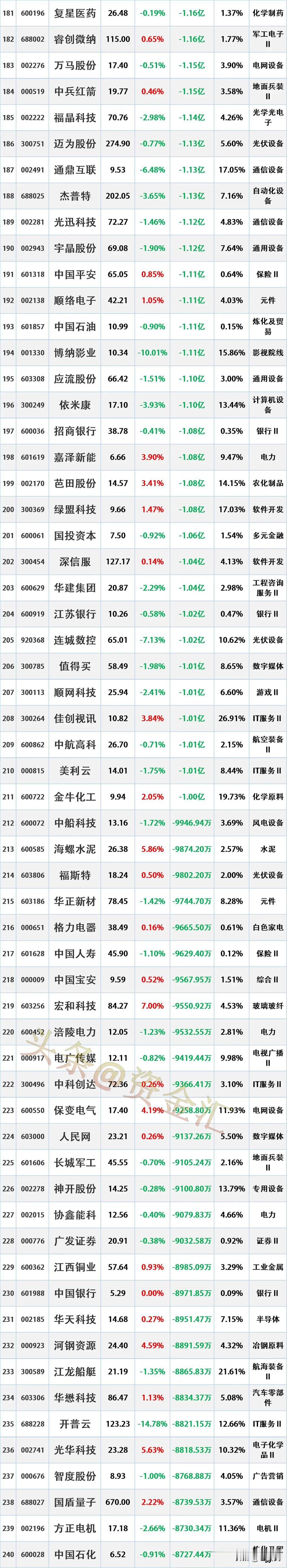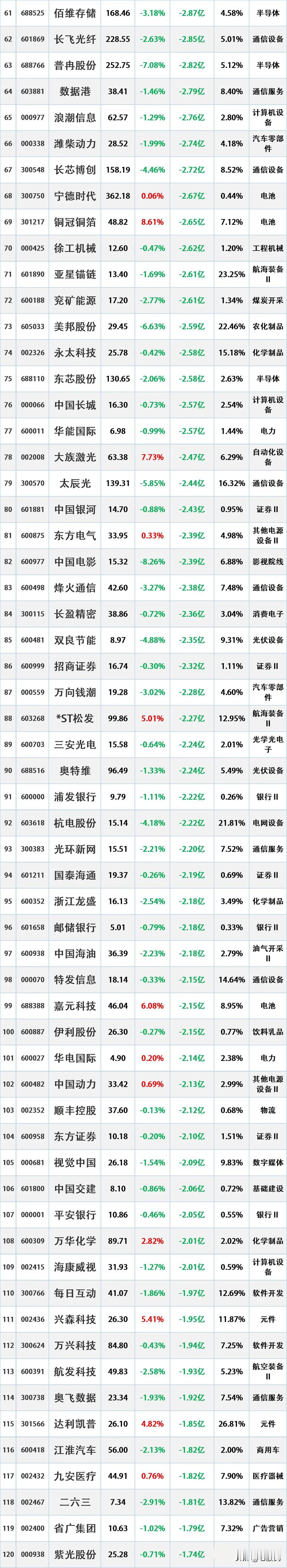 尾盘出逃,2月25日主力资金“最大卖出”这些股 时间2026-2-25 17:30:58