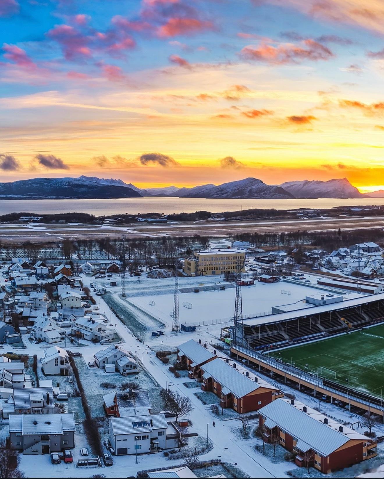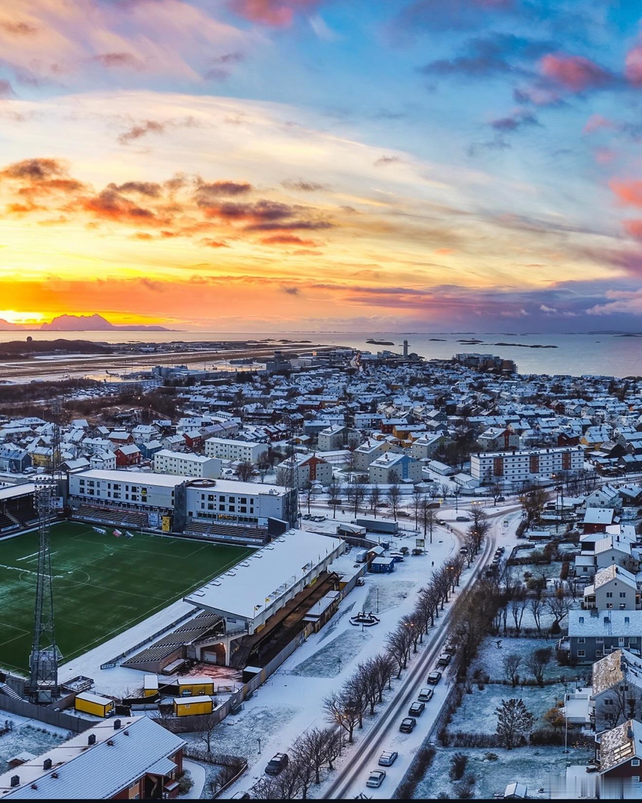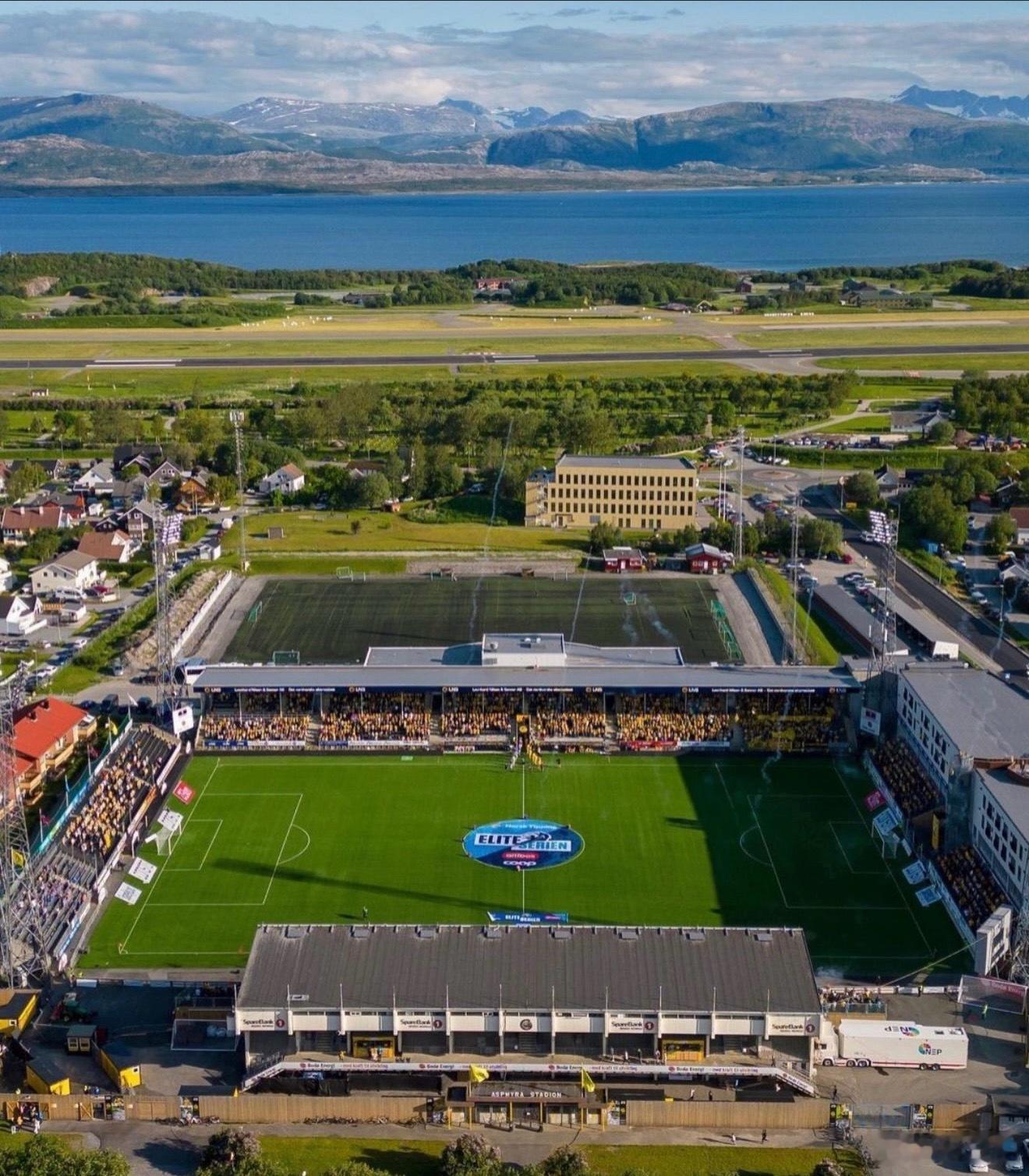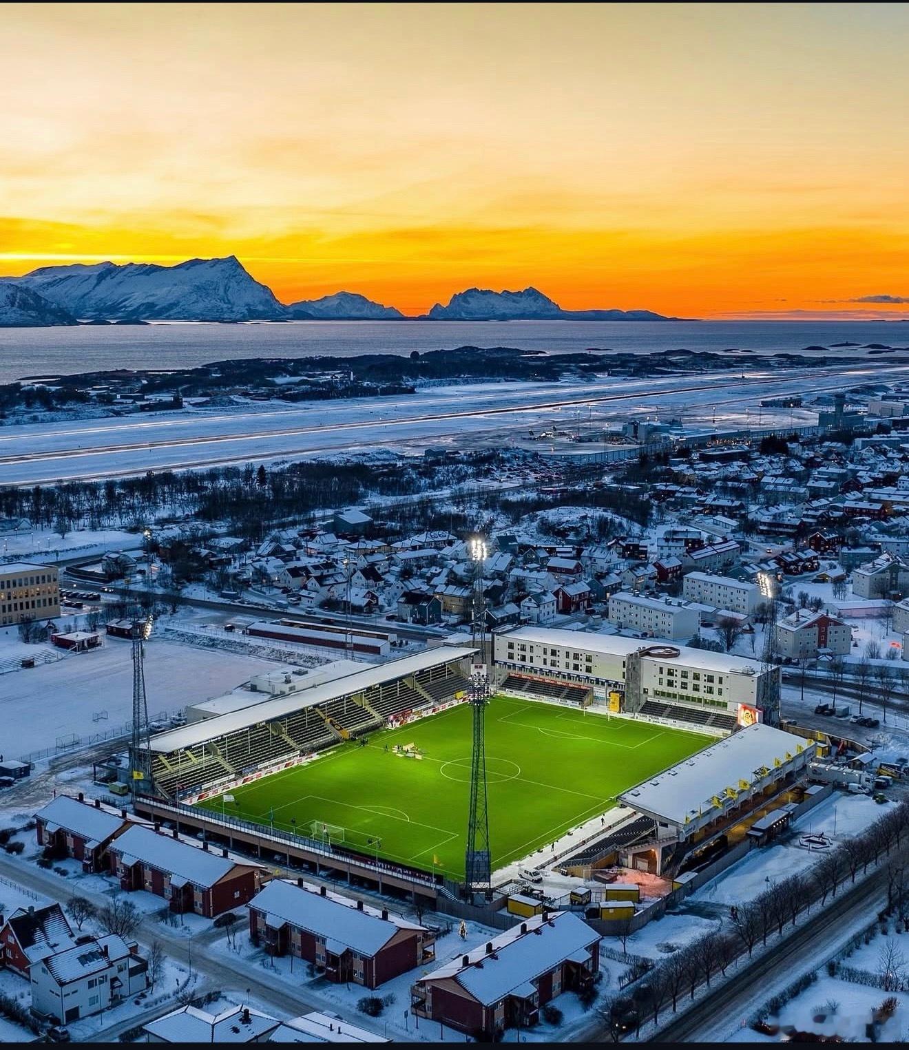 这座球场首先是位于北极圈内,博德荣耀主场所在的城市博德(Bodø)人口只有 5 万多(另一说只有 44000 人),渔业发达,每年6月初至7月初还有极昼现象。