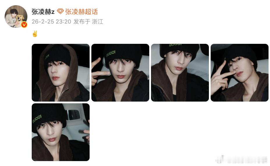 张凌赫比耶自拍 张凌赫深夜晒比耶自拍,老公好帅!