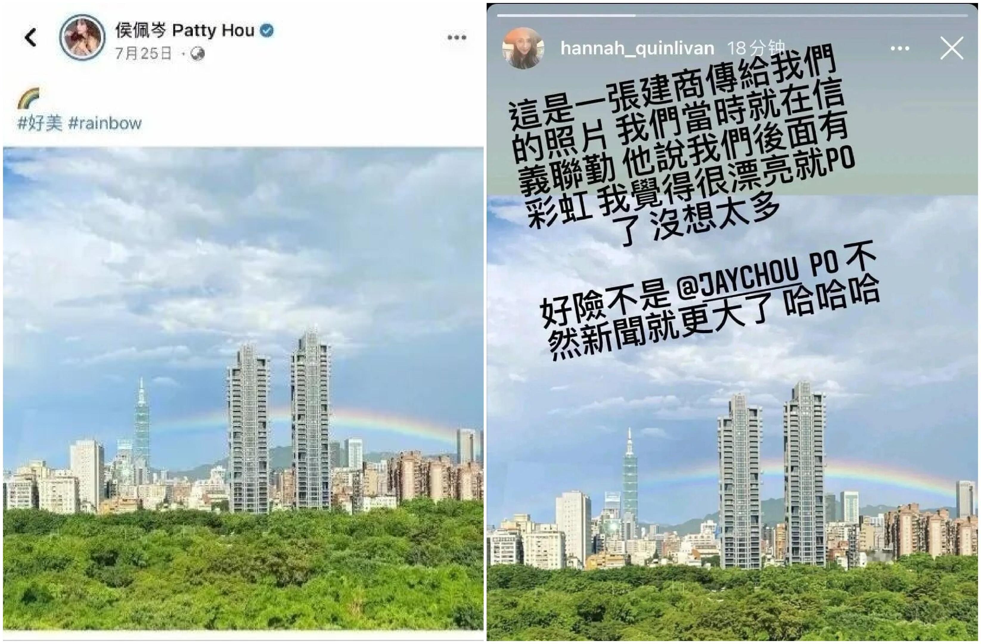2026年1月18日,周杰伦已年满47周岁,已经是三个孩子的爹,居然还有网友考古周杰伦、田馥甄的CP,如果真的算默契,且公开承认的恋情,应该是周杰伦和侯佩岑吧,比周杰伦更放不下侯佩岑的,还有正妻昆凌,比如那张一模一样的“彩虹图”,图中的高层顶楼就是周杰伦家。满谈娱乐