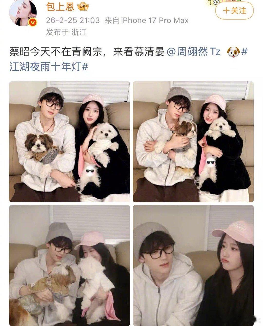 周翊然包上恩抱狗合照哈哈哈哈哈哈,没想到啊没想到,周翊然包上恩互抱小狗,也太甜了吧,不愧是你俩,周翊然包上恩抱狗合照氛围感直接拉满,好耐看的一对啊,哈哈哈哈哈哈哈,好期待你俩可以多多合体营业,简直不够看啊~哈哈哈哈哈,从戏里嗑到了戏外!