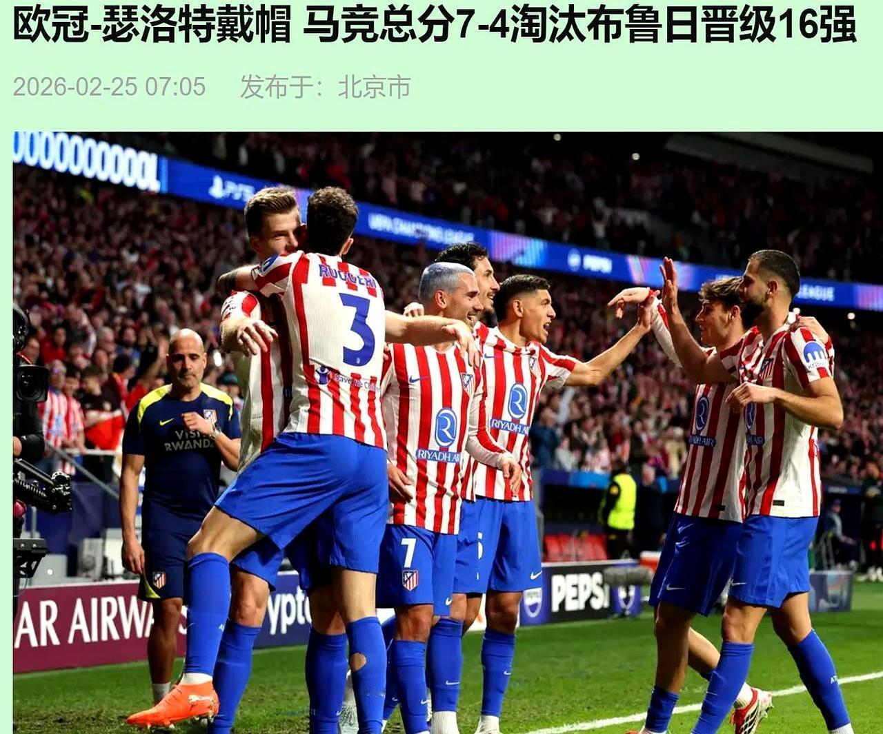 三次中柱,悲壮出局?别闹了,马竞用一场4-1告诉你,竞技场上最不值钱的东西,就叫“差一点”。 上半场布鲁日扳平比分,甚至一脚射门狠狠砸在门框上,那一刻,多少人以为黑马逆袭的剧本又要上演。他们控球、传导,看起来那么努力,那么悲壮,像极了那个通宵做PPT,最后被老板一句话打回原形的你。 可惜,成年人的世界,没人看你流了多少汗,只会问你事儿办成了没。下半场卡多索那一脚30米外的世界波,没有任何铺垫,像一记耳光,瞬间打醒了所有沉浸在“悲壮”叙事里的人。 然后就是瑟洛特的表演时间。门将一个大脚开过来,他扛着后卫就射;队友一个传中过来,他抢到点就捅;再一个传中,他凌空就垫。5次射门,3个进球,没有一丝犹豫,像个冷血的杀手,只负责把子弹送进目标。 这才是足球,也是生活。机会窗口就那么一秒,你还在那思考姿势好不好看,人家已经把球抱回家了。马竞用最“功利”的方式,治愈了无数人的“尽力就好”综合症。 说真的,你觉得在工作和生活里,是“漂亮的输”,还是“丑陋的赢”更重要?