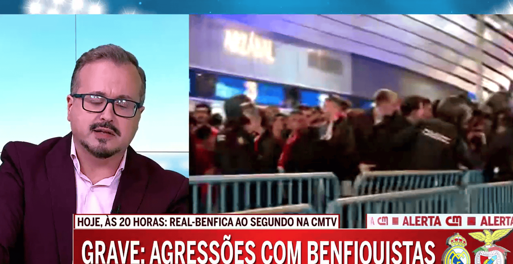 据他透露,在马德里已有本菲卡球迷受伤或遭到威胁。有孩子被迫脱下本菲卡球衣,还有人在母亲陪同下受到恐吓。他们现在甚至不在体育场,而是在机场。还有部分本菲卡球迷在当地酒吧遭遇不当对待,被迫移除所有显示自己是本菲卡球迷的标识。