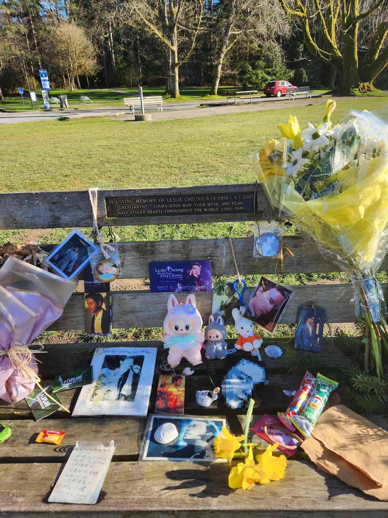 这是在温哥华公园的一张纪念张国荣的长椅,每次去都能看到歌迷送上的祝福。 这里也很