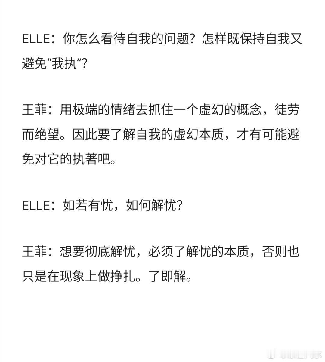 生活手记王菲 菲氏哲学。采访和回答都很美妙。哲学家,王菲!了即解 因即果,觉即
