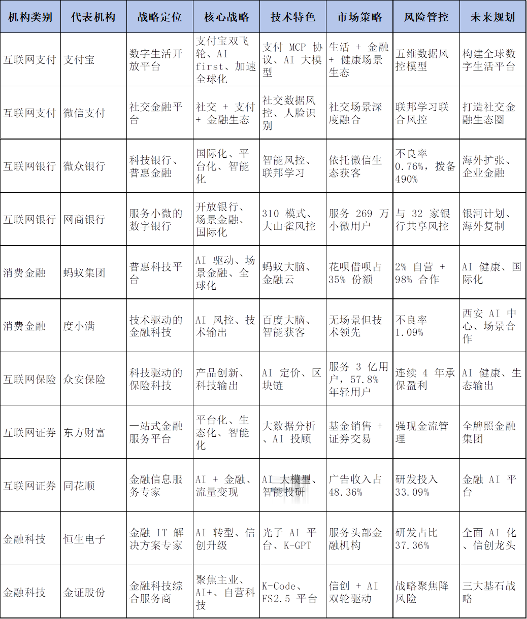 这一战略一览表清晰展示了各机构的差异化定位和发展重点。从表中可以看出几个明显趋势: