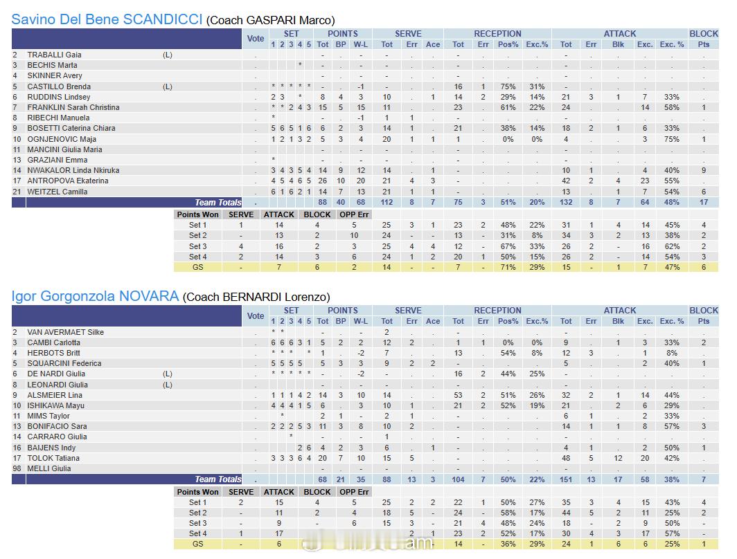 女排 斯坎迪奇1-3/3-1诺瓦拉,决胜局以15-7战胜对手晋级欧冠8强,奥杰年诺维奇荣膺本场mvp女排欧冠