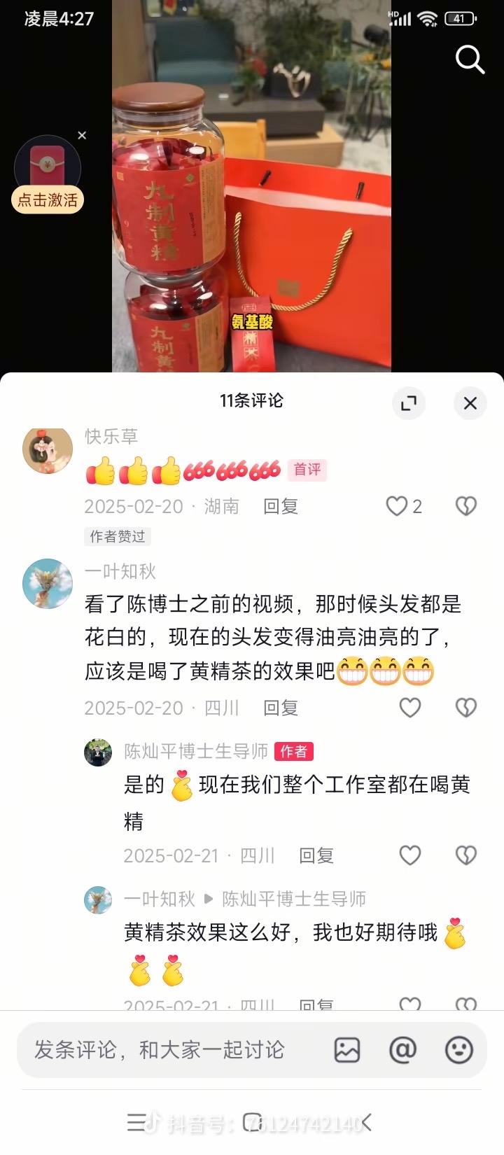 @反诈老陈 来活了! 网红县长陈博士卖的1300一单的黄精能让白发变黑发, 这是真的吗? @反诈老陈 , 快去买一单测试一下。 如果是真的, 我倾家荡产都要买, 年过五十的我, 两鬓白发太严重了, 恨不得一个月要染一次, 不然“原形毕露”。 昨天看到陈博士的直播切片, 我似乎看到了希望, 白发转黑不是梦想, 1300元的黄精会让我黑发飘飘。 有人说陈博士在割韭菜, 我倒不这样认为。 如果这效果如陈博士所说, 1300元一单太便宜了, 价格太“良心”, 13万一单我都愿意购买。 梁羽生笔下的“白发魔女”如果在天有灵, 她一定会捶胸顿足, 恨自己生不逢时, 自己曾经一夜白头时, 没能遇到陈博士, 不然满头白发早就黑发飘飘了…… @反诈老陈 快去帮我们这些白发族鉴定真伪吧, 如果是真的, 你帮你的盟友打个广告。 如果涉嫌虚假宣传, 支持你大义灭亲。 哎,不得不佩服某些群体, 他们的消费观念如此扭曲, 坐着一万多的沙发, 喝着一两百的鸡汤, 吃着69元的虾仁, 剥着3.5元一斤的砂糖橘, 品着一万多的红茶, 再来1300点黄精…… 魔幻的一群人, 他们的消费水平到底是高端? 还是主打的随心所欲? 散会! 董宇辉