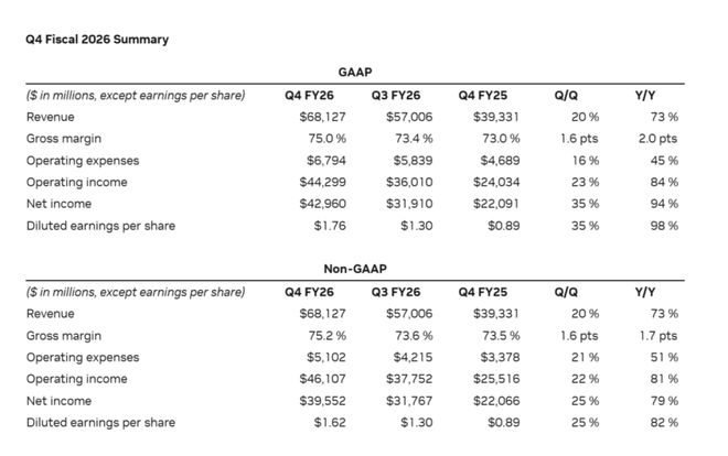 财报显示,英伟达该季度总营收为681.3亿美元,环比增长22%,同比增长75%,高于分析师预测的662亿美元的营收额;该季度每股盈利为1.62美元,超过华尔街分析师预计的每股1.53美元的水平。