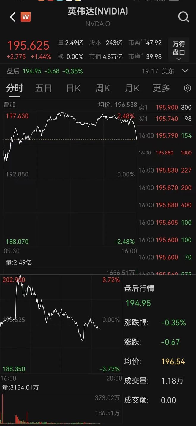 英伟达盘后发布2025年第四季度业绩报告。在盘后交易中,英伟达股价一度涨超4%,截至发稿,下跌0.35%。