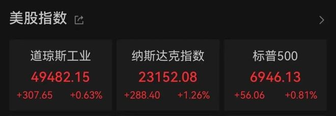 美东时间2月25日(周三),美股三大指数集体收涨,道琼斯工业平均指数涨0.63%,纳斯达克综合指数涨1.26%,标普500指数涨0.81%。
