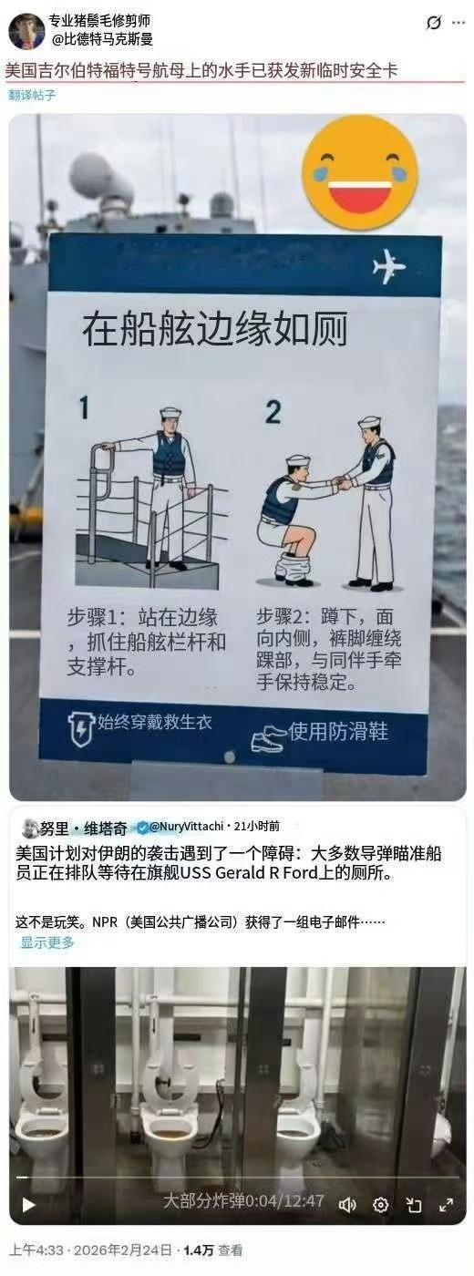 福特号航母上的温馨提示士兵们整日操心排泄问题上厕所都快整出各种流派了