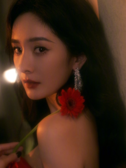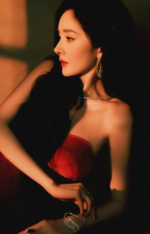 杨幂酒红丝绒裹着雪白肌肤,长腿交叠处是克制的性感。杨幂