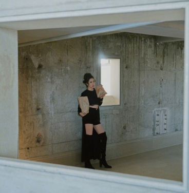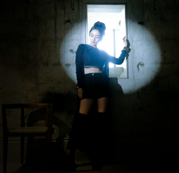 优雅黑衣少女,蕾丝细节,温柔眼神,时尚穿搭