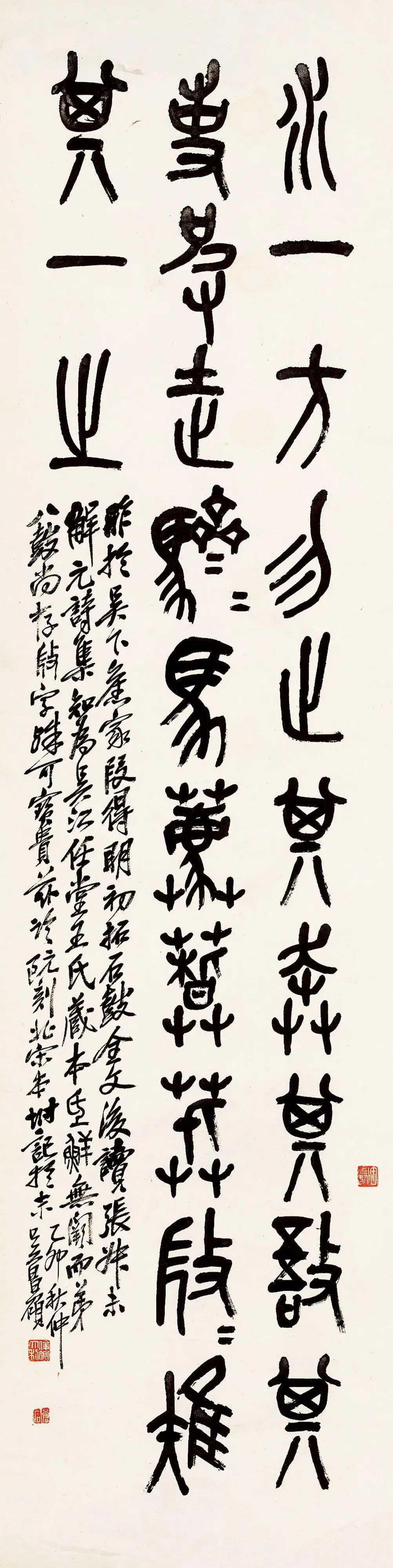 吴昌硕 节临石鼓文《銮车篇》,水墨纸本 136×34 cm.×4。吴昌硕书法着力