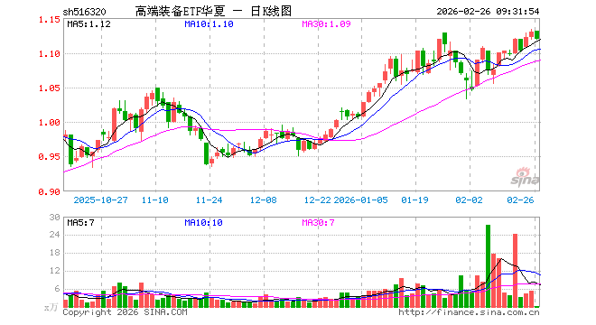 2月26日,高端装备ETF华夏(516320)开盘涨0.09%,报1.131元。高端装备ETF华夏(516320)重仓股方面,宁德时代开盘跌1.69%,阳光电源跌0.71%,中国船舶跌0.39%,汇川技术跌0.35%,三一重工跌0.08%,特变电工跌0.23%,隆基绿能跌0.16%,徐工机械跌0.08%,思源电气跌0.84%,潍柴动力跌0.53%。