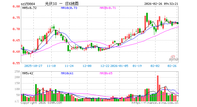 2月26日,光伏ETF国泰(159864)开盘涨0.00%,报0.729元。光伏ETF国泰(159864)重仓股方面,特变电工开盘跌0.23%,隆基绿能跌0.16%,阳光电源跌0.71%,TCL科技涨0.21%,迈为股份跌0.55%,德业股份涨0.00%,正泰电器涨0.09%,TCL中环跌0.29%,捷佳伟创跌0.28%。