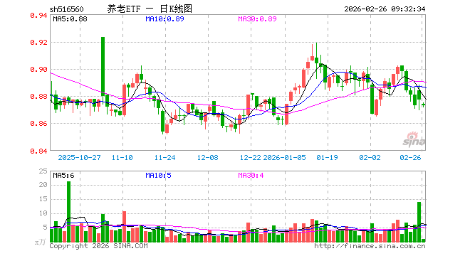 2月26日,养老ETF(516560)开盘跌0.34%,报0.874元。养老ETF(516560)重仓股方面,中国中免开盘跌1.07%,新诺威跌0.27%,万辰集团涨0.23%,新乳业跌0.11%,中国太保涨0.14%,中国平安涨0.69%,永辉超市涨0.23%,菜百股份跌0.56%,首旅酒店跌0.06%,甘李药业涨0.04%。