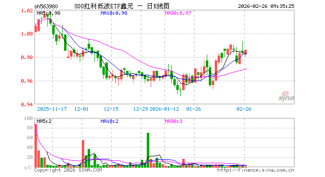800红利低波ETF鑫元(563980)业绩比较基准为中证800红利低波动指数收益率,管理人为鑫元基金管理有限公司,基金经理为刘宇涛、莫志刚,成立(2025-10-24)以来回报为-1.59%,近一个月回报为2.47%。