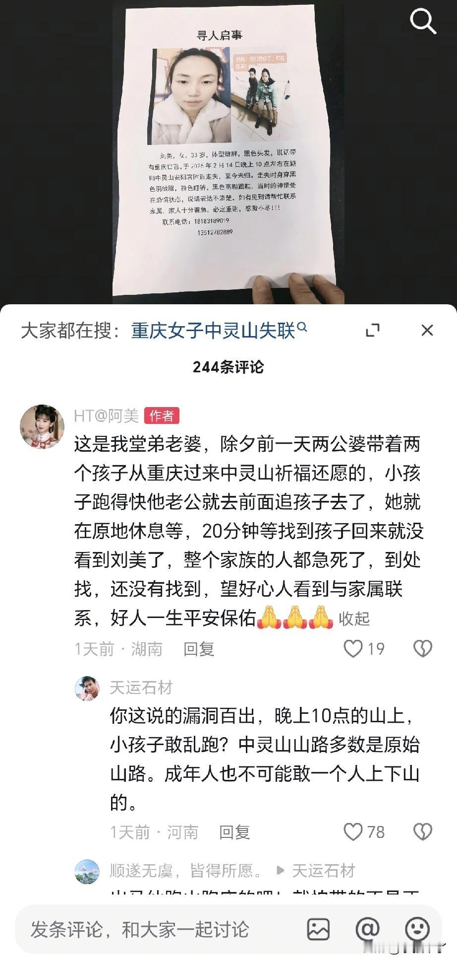 33岁重庆女子在河南中灵山坠崖身亡事件,老公的堂哥发文解释了几点。 第一,为什么要千里迢迢来这里,因为是找山上的“无生老母”还愿。那么由此推测,之前来过这个地方许愿,而且还是实现了,证明对路线并不陌生。 第二,一家四口去爬山,为什么单单女子坠崖身亡呀?因为孩子调皮跑的太快了,男子去追,并叮嘱老婆让在原地等待,稍后来接,可20分钟,和孩子一起回来时,却不见了。从侧面也证明了,男子害怕老婆再次走丢,并做了安排。 第三,为什么大晚上还要去山上呢?因为信徒都想上头香,这样才能表现心诚。 第四,为什么光着脚走路?因为穿着高跟鞋太累了,所以脱了下来。小编见过老多女性爬山穿高跟鞋的,最后光脚爬山,手里掂着两双鞋,据说这样拍出来的照片非常有特色,好看[泣不成声]。 逝者已去,请大家不要网暴女子老公了,等待官方的真相吧。
