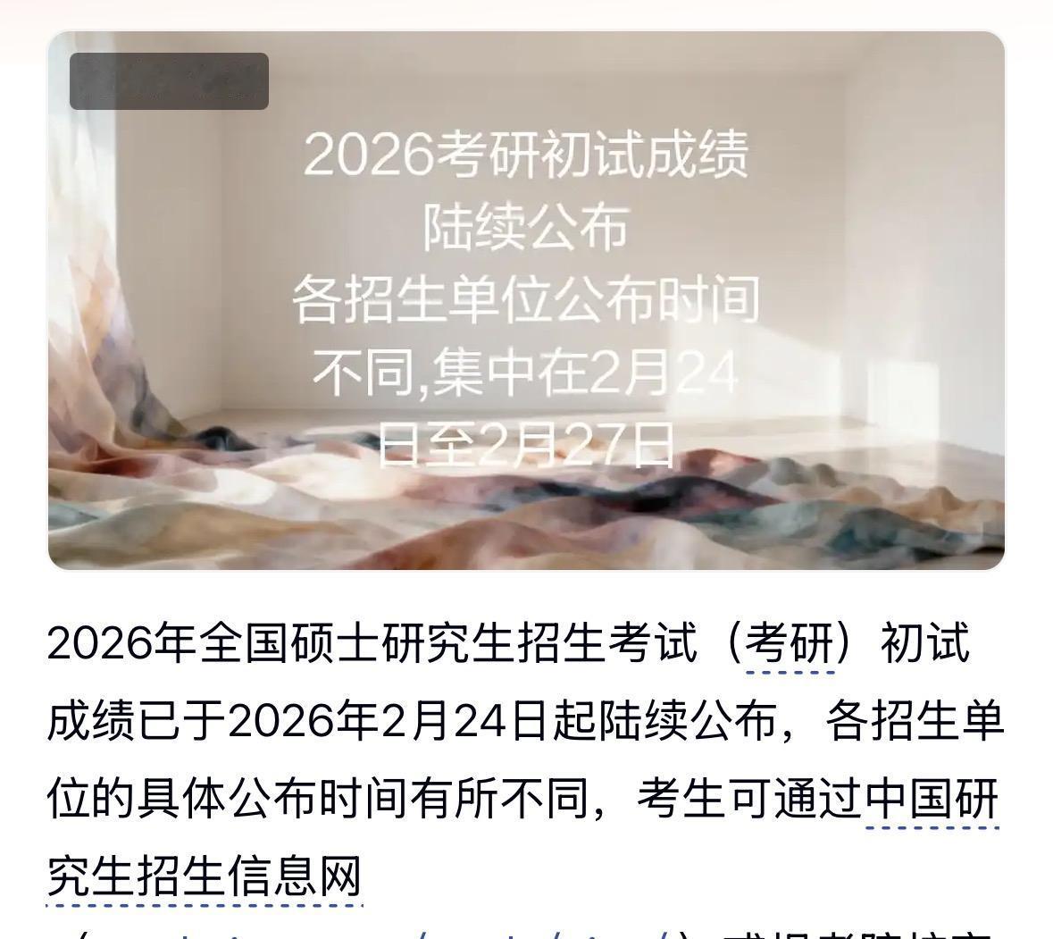 2026年的考研查分,简直比难产还折磨人! 原本传得沸沸扬扬的2月24日出分,让无数考生从天亮等到天黑,从深夜熬到黎明,恨不得坐在路由器上,官网都蹲麻了,成绩却 迟迟不肯露面。 从24号开始直到今天, 我敢说,不止是我,全国数百万考生及家人每天的日常都离不开这两件事:刷查分通知、猜出分时间,像极了热锅上的蚂蚁,坐立不安,彻夜难眠。 原本明确24日出分的院校,竟然悄悄把通知改成“2月下旬”,有的甚至直接删除公告,还有的院校的电话打不通根本打不通,搞得大家人心惶惶。 今年的成绩查询犹如钝刀子割肉。备考大半年,熬过了寒冬,扛过了压力,就盼着一个结果,可这份结果迟迟没有结果。 有人为了考研放弃了实习机会,一门心思等成绩,结果越等越慌,越慌越乱!