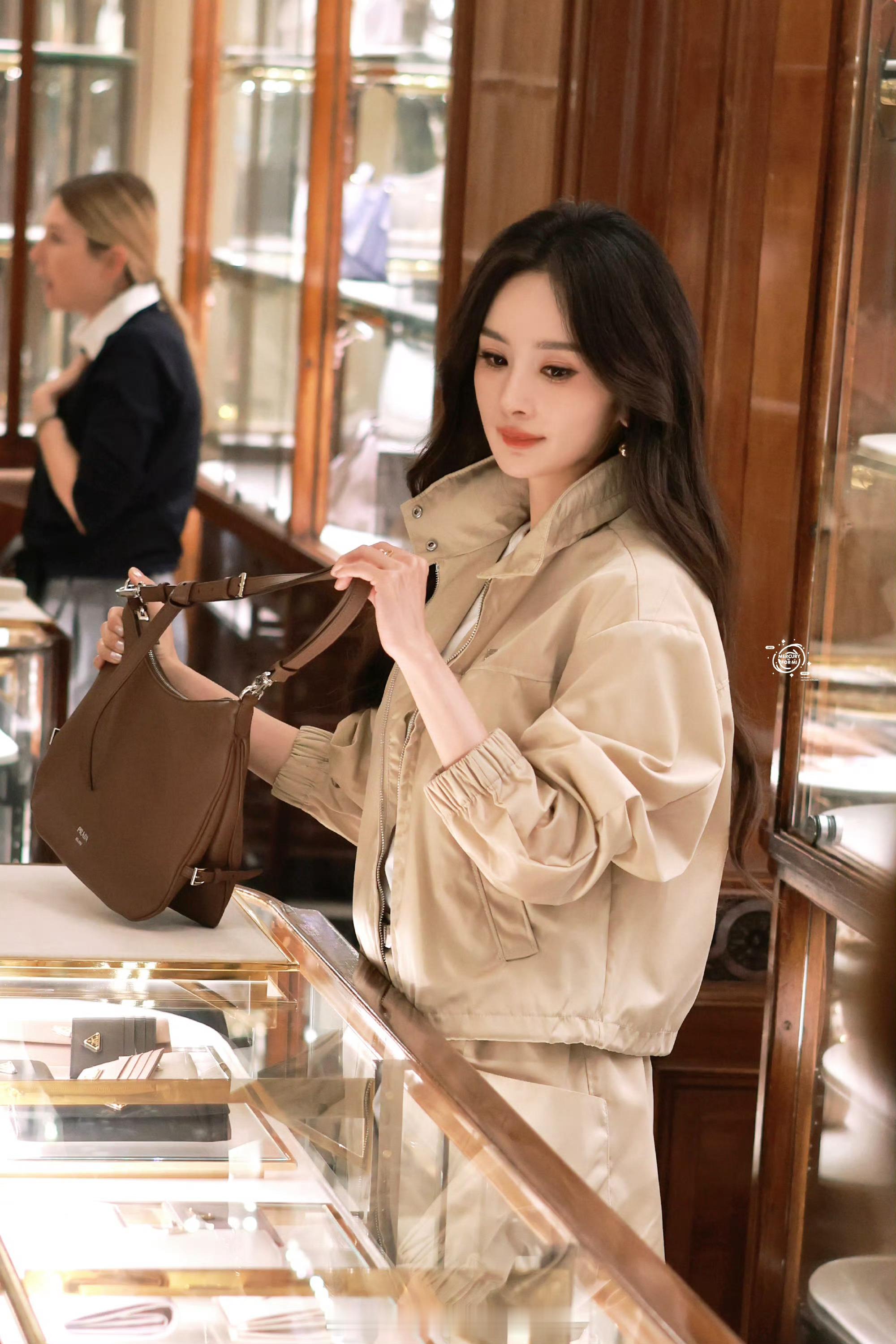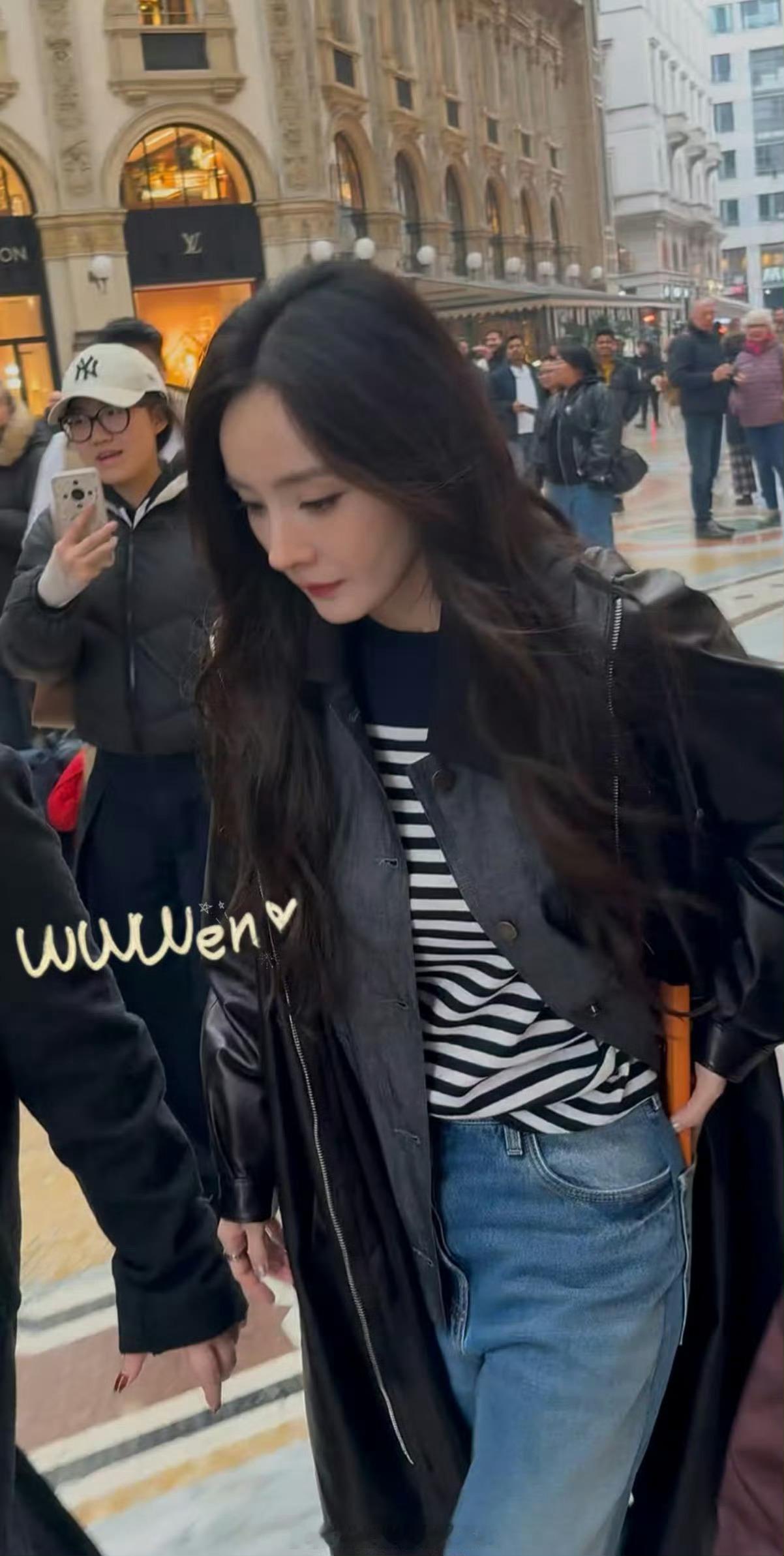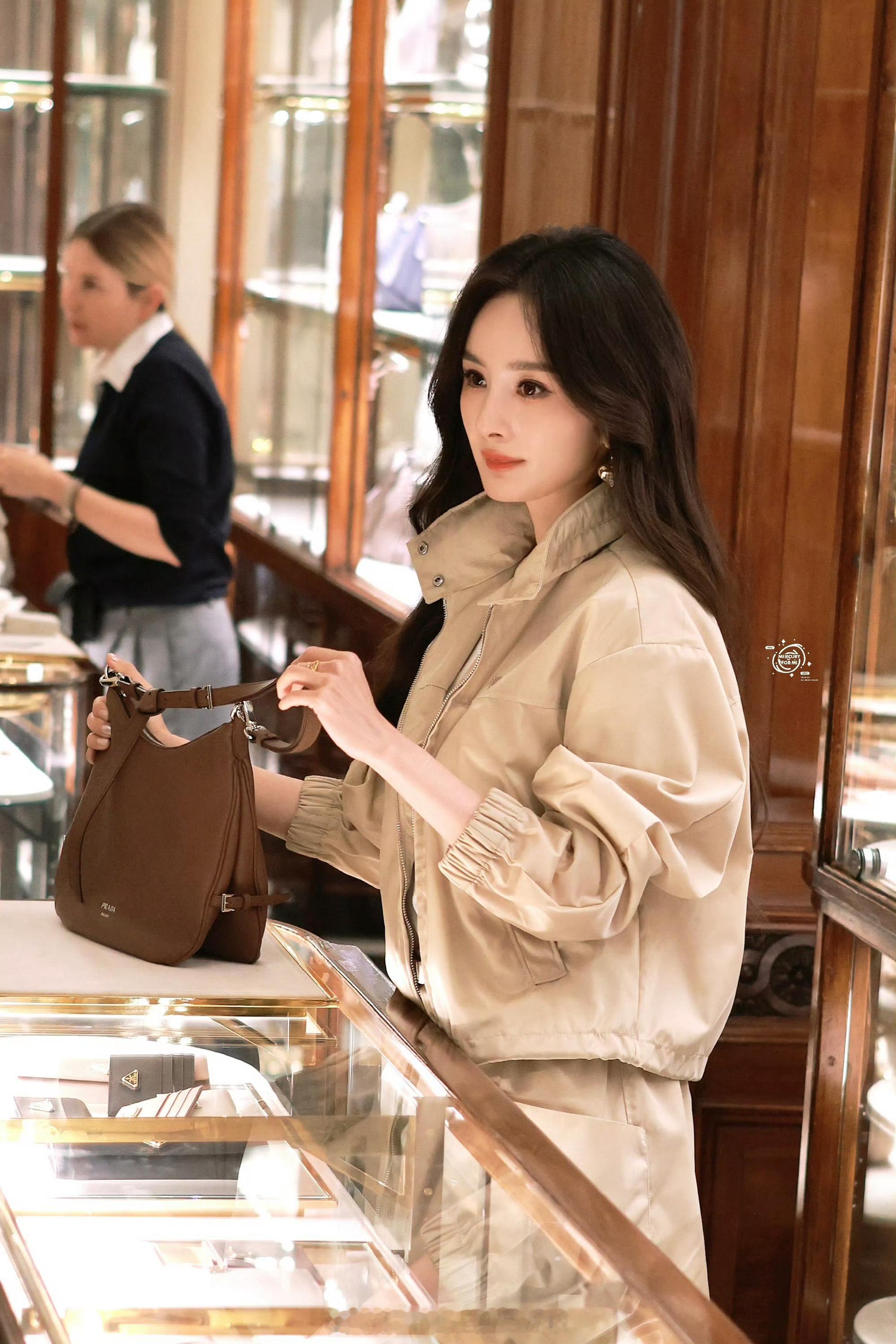 米兰偶遇杨幂探店杨幂米兰时装周探店prada,人群中的女明星一样耀眼