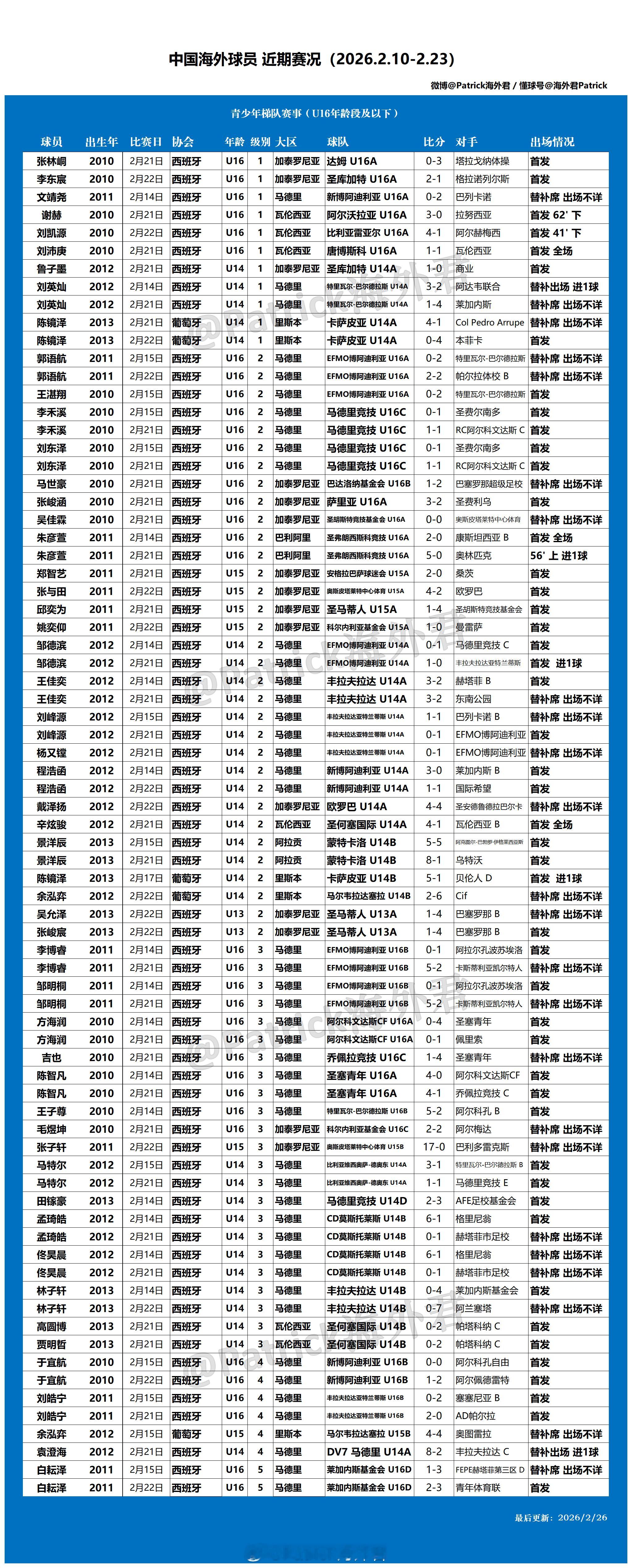 西班牙男足联赛体系概览(2025/26赛季新版)网页链接 2025/26赛季中国海外球员数据一览(成年)网页链接 2025/26赛季中国海外球员数据一览(青少年)网页链接