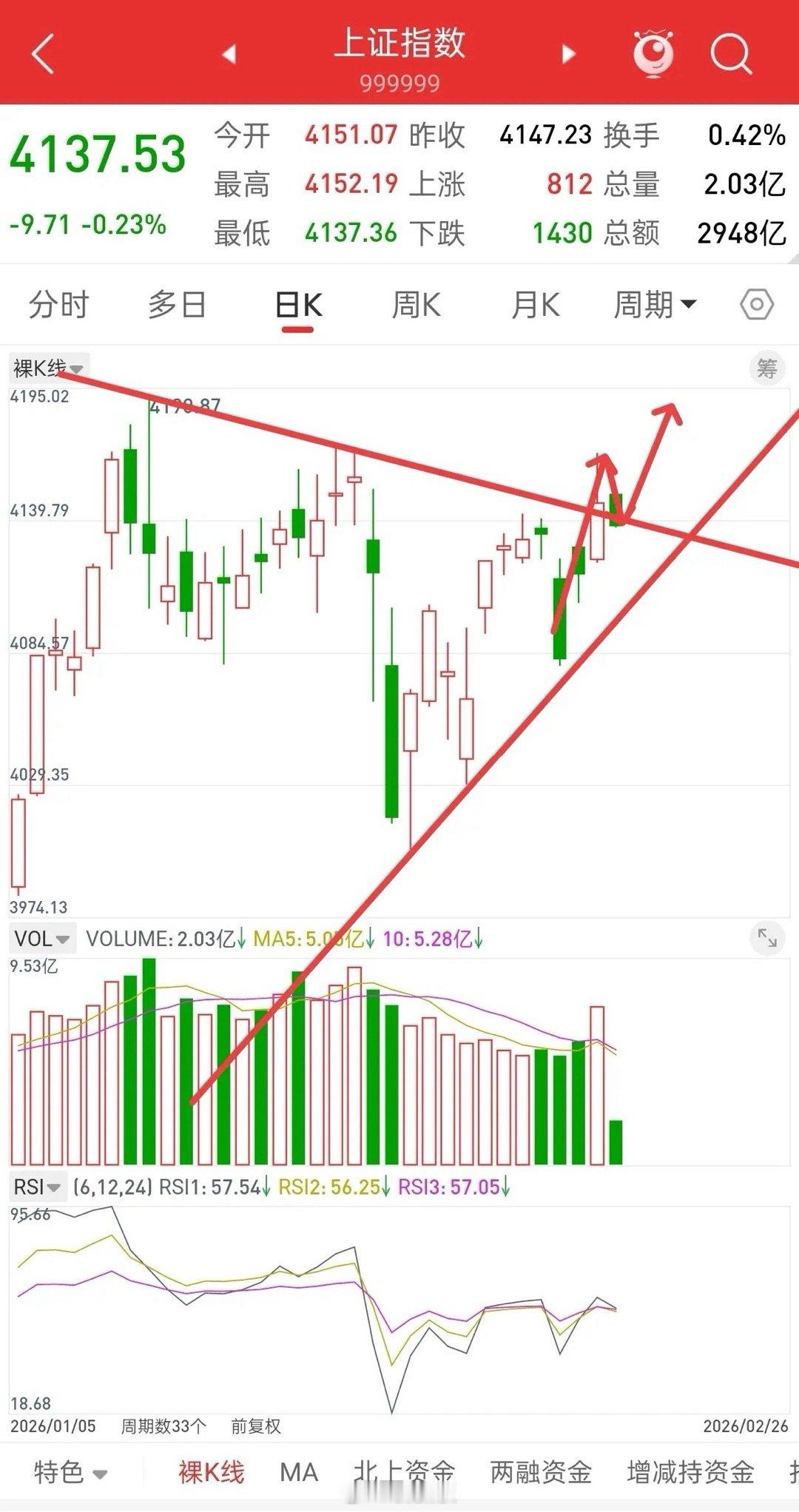 如果说昨天是突破4190-4170下降趋势压力大概4145左右,那今天就是属于突破之后的回踩,而回踩就是上车机会。