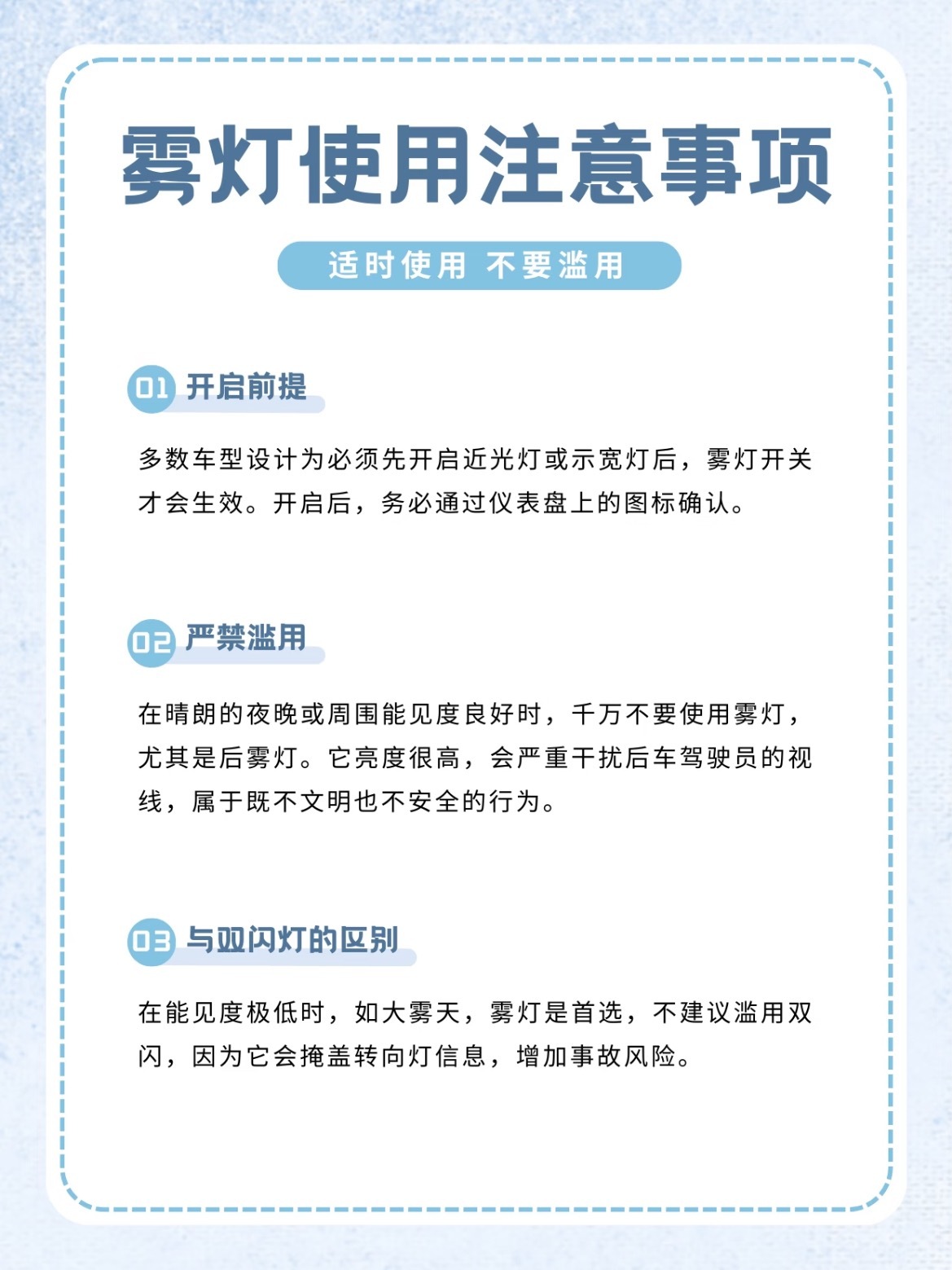 雨雾天开车必须开雾灯!但开关在哪?🚗3种开启方式1️⃣拨杆式:先打开示宽灯/近光灯,转一下开前雾灯,转两下开前后雾灯。2️⃣旋钮式:向外拉一格开前雾灯,再拉一格开前后雾灯。3️⃣按键式:找到前/后雾灯的按钮,直接按就行。注意事项✔很多车要先开近光灯才能开雾灯。✔ 晴天、晚上别乱开雾灯。✔ 雨雾天开雾灯比开双闪更好。我与汽车的日常大v聊车