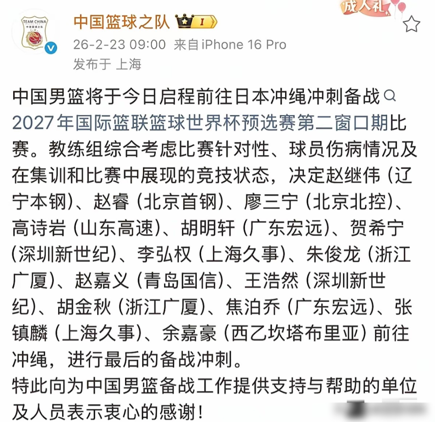 0胜2负,中国男篮封闭集训18天。 春节都没过好,全队兵发日本,就为这一场。上次被韩国双杀,外线彻底失准,这次郭士强求变,带上场均20分的贺希宁,还有21岁的新兵王浩然。有人说为啥还用高诗岩,老郭想得很明白,先用防守撕咬对手,再上奇兵。这一场再输日本,出线概率可能就剩10%。 篮球不是一个人打的,但压力,真是一个人扛的。