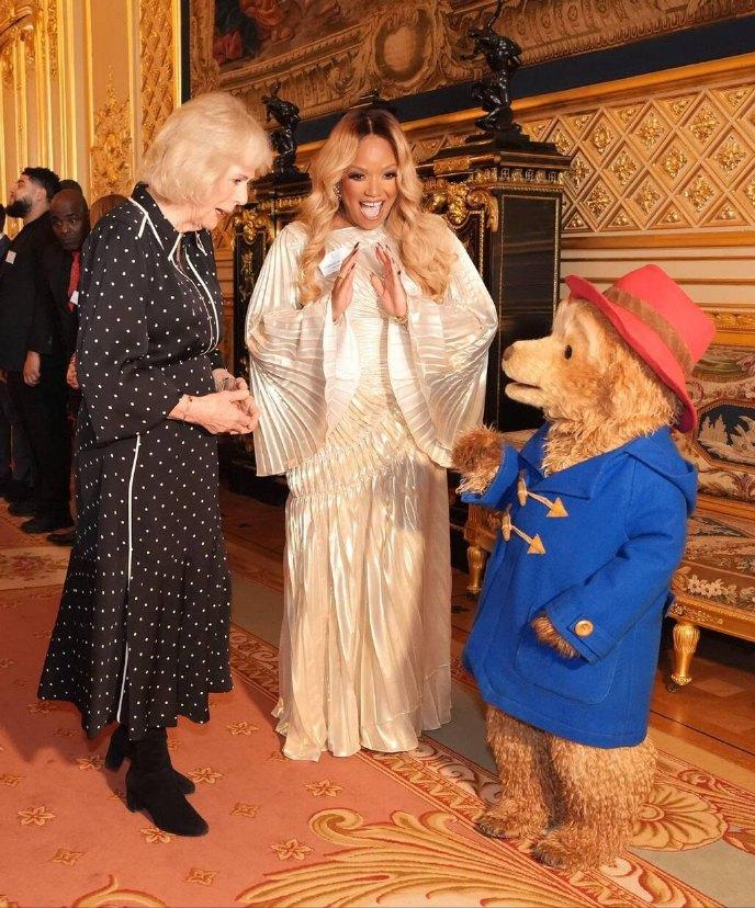 2月25日,卡米拉王后在温莎城堡与帕丁顿熊见面! 卡米拉王后穿着一袭黑白波点裙,这次还搭配了小高跟的短靴,时尚感多了不少。 成为王后后,卡米拉也曾多次和帕丁熊相见,算是老朋友了,作为已经78岁的人,卡米拉这几年似乎并没有什么变化,除了衣品变化了不少。 不过比起她的婆婆伊丽莎白女王,还是无论是气质还是相同年龄时的颜值,女王依旧是王室标杆。 伊丽莎白女王也曾和帕丁熊共享下午茶,婆媳俩和帕丁熊的相处画面,伊丽莎白女王不愧是天生的贵族,骨子里的优雅松弛,还有那不时的俏皮感都特别让人喜爱!