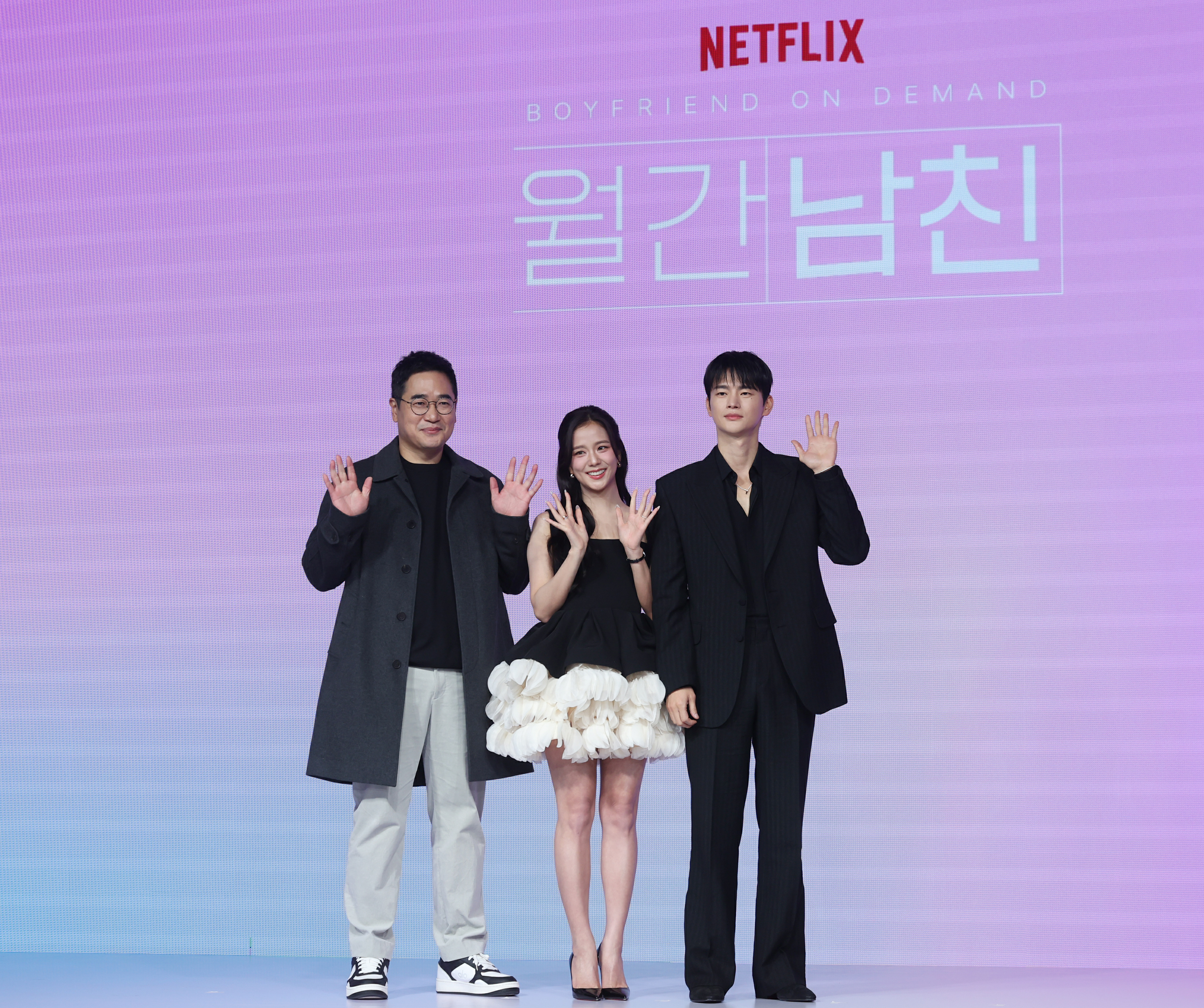 JISOO好美!金智秀牵手徐仁国和导演金正植共同亮相Netflix新剧订阅男友发布会!坐等3月6日开播!金智秀