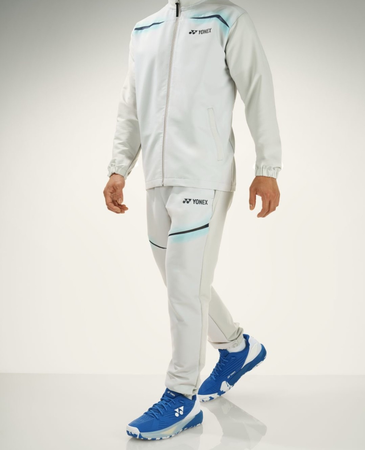 YY这款银灰色套装采用防紫外线和防静电面料设计,让您活动自如。