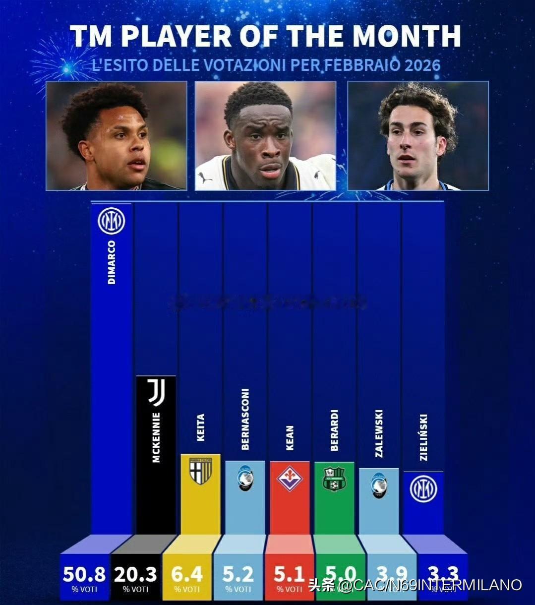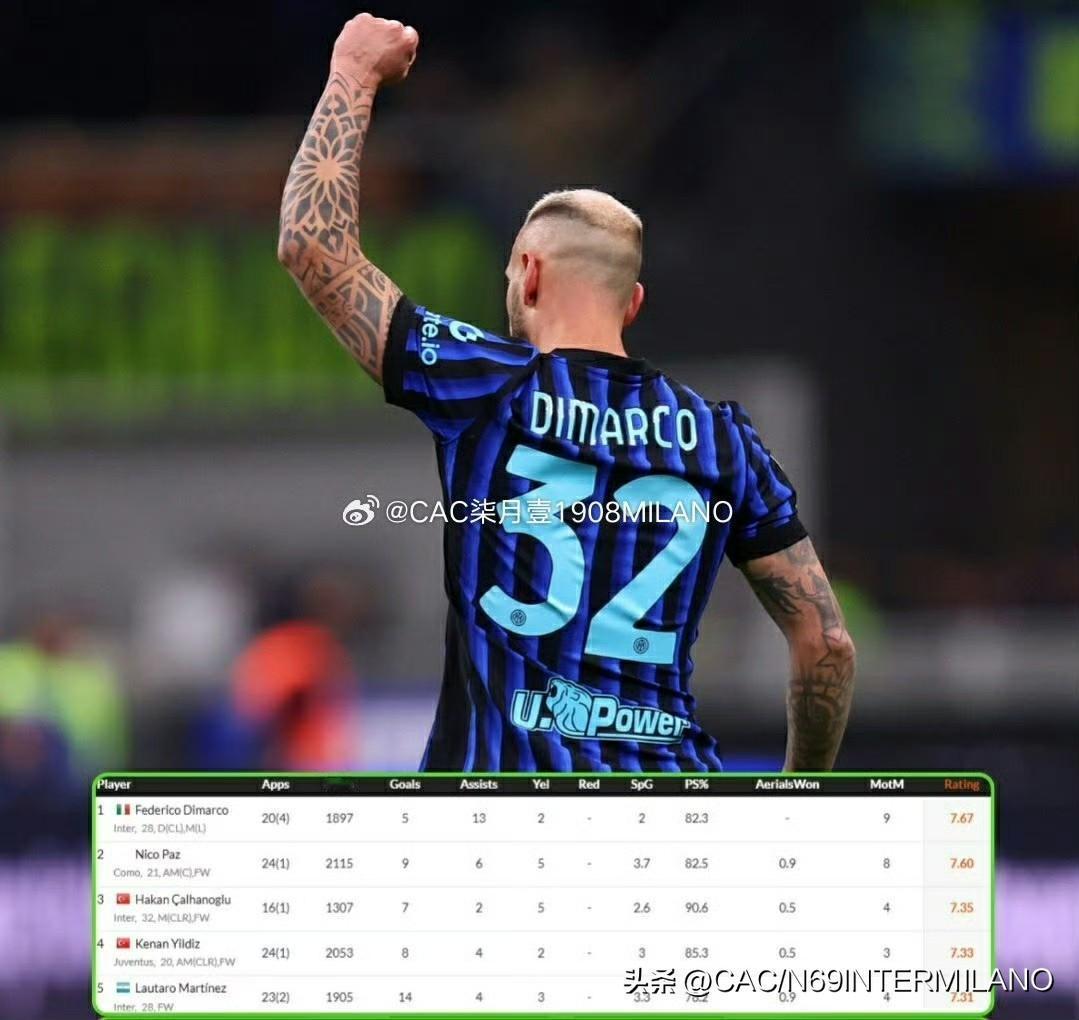 在过去的 6 场比赛中,迪马尔科的评分(8.54 分)在欧洲五大联赛的所有球员中最高,同时,他也是本赛季联赛中评分最高的球员,前五位国际米兰三位球员上榜。联赛月最佳球员,国际米兰泽林斯基和迪马尔科入选,太子再次以大幅度领先蝉联二月最佳球员! 贝尔戈米: “巴雷拉?我明白,但对年轻球员来说,他似乎大多数时候不被认可,去年有些人还称赞他的雄心壮志,如今却说他们应该先于欧冠或者联赛出战,一支伟大的球队必须在所有目标上都保持一致,没有欧冠或联赛优先,可一旦未能达成,在国际米兰的结果就只有批评。” 感谢,老队长! 加油,巴雷拉!加油,迪马尔科!