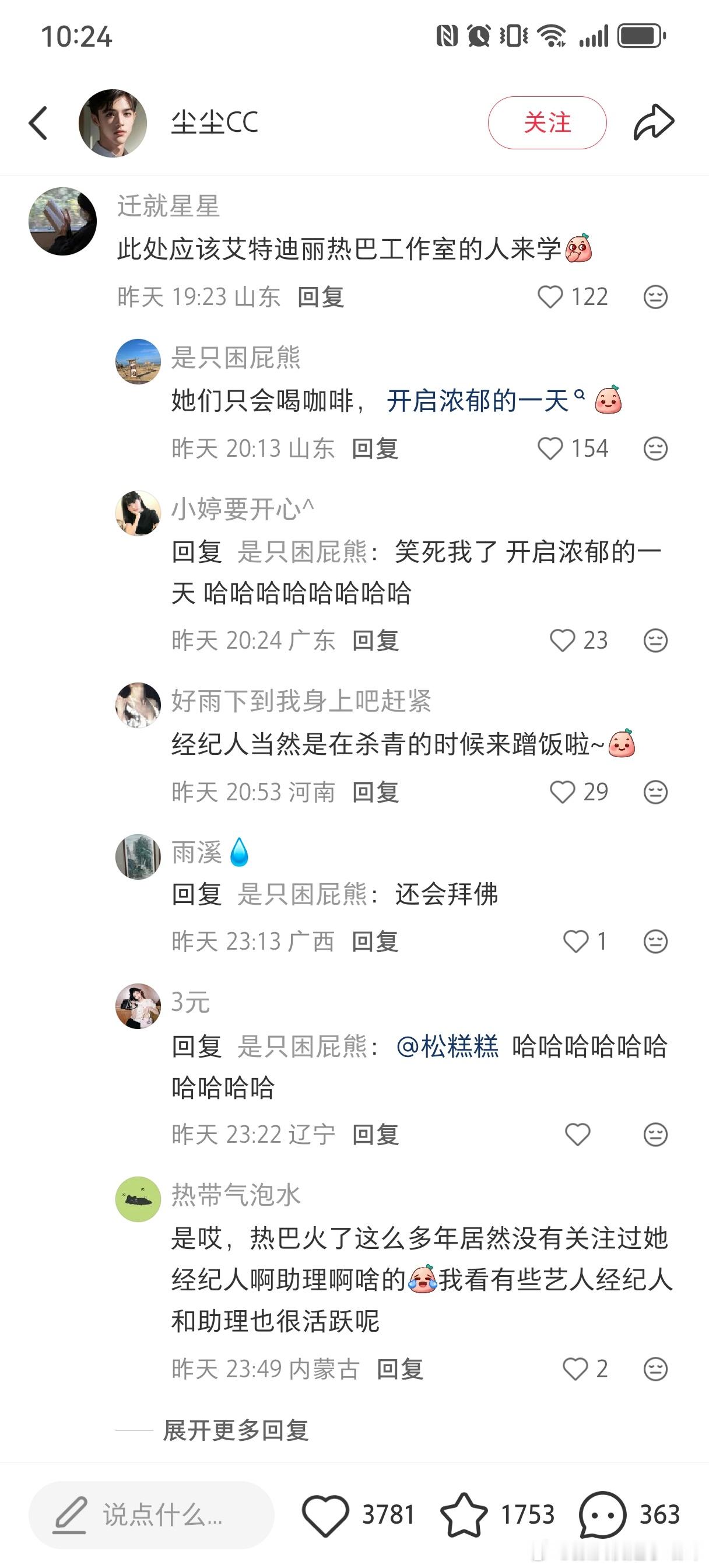 一篇名为《艺人进组后,经纪人在干什么的帖子》把各家粉丝都给炸出来了,感觉侯明昊和迪丽热巴的粉丝是最活跃的,大家都快来认领自家经纪人
