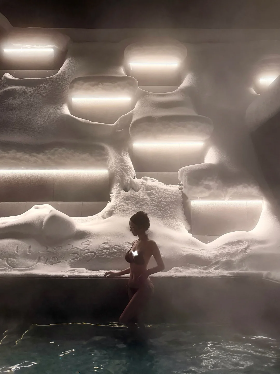 晚上在酒店里泡了个雪地温泉♨️