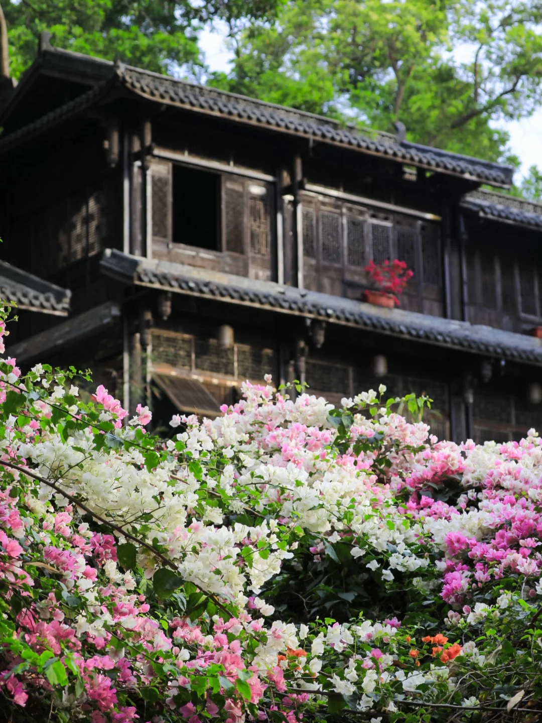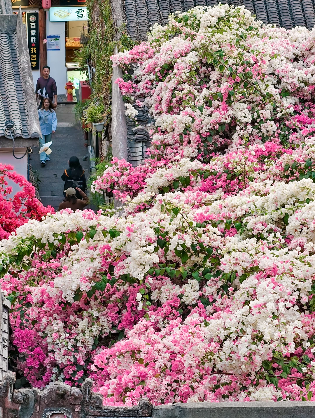 💡古镇里种了很多三角梅,有三处规模最大,是主要的拍照打卡点: