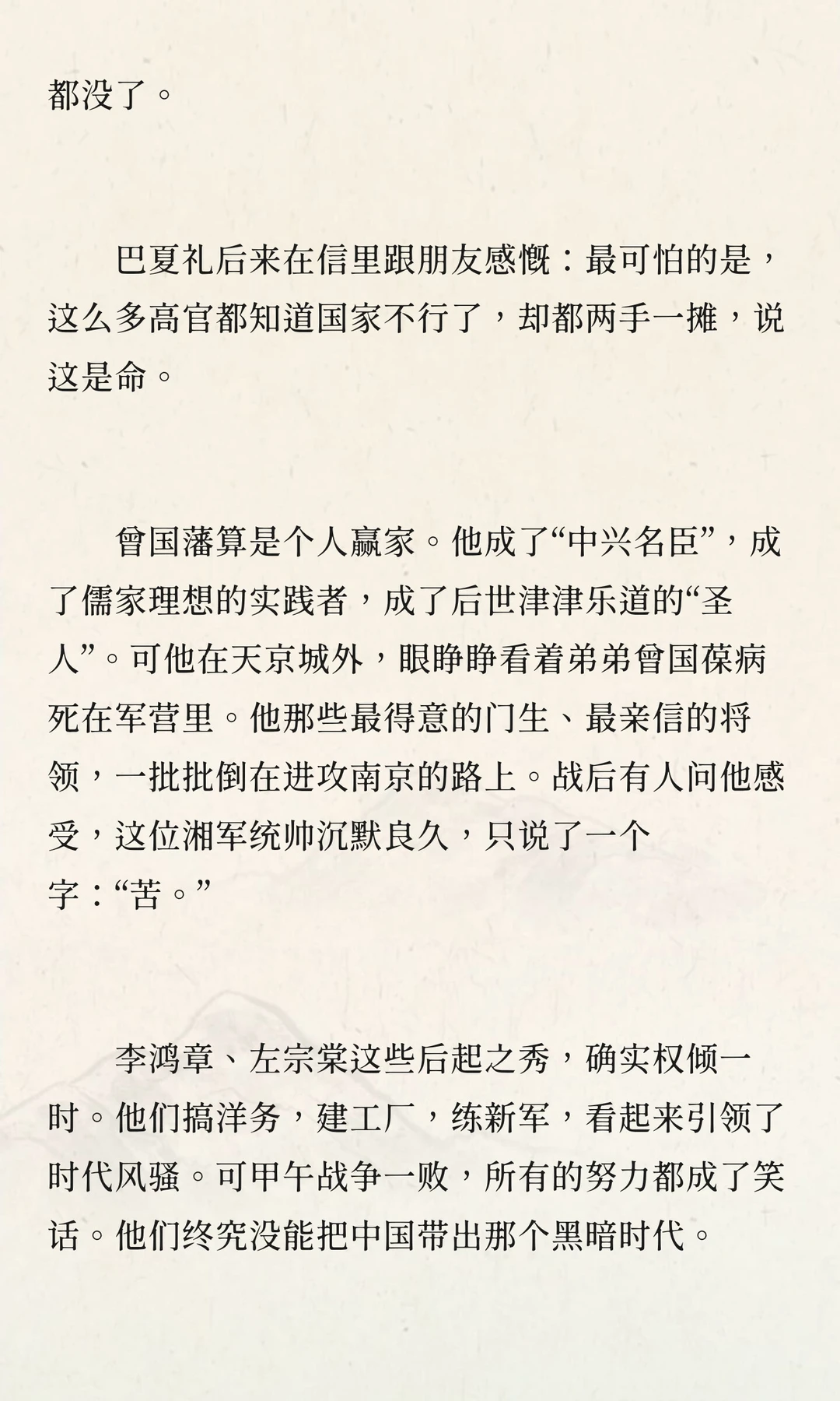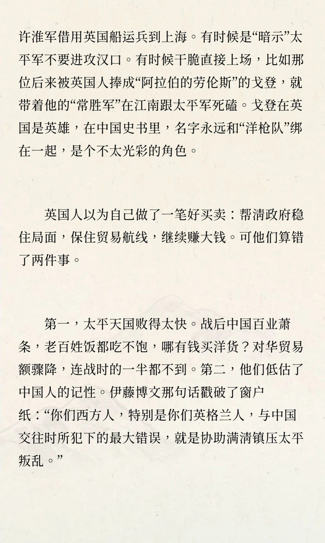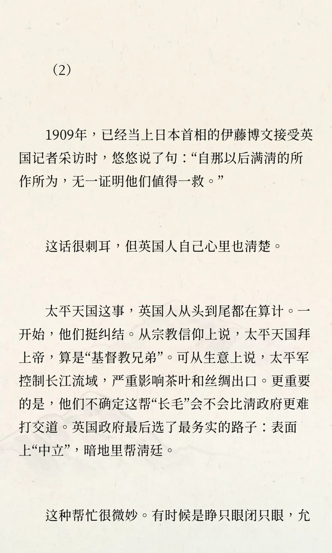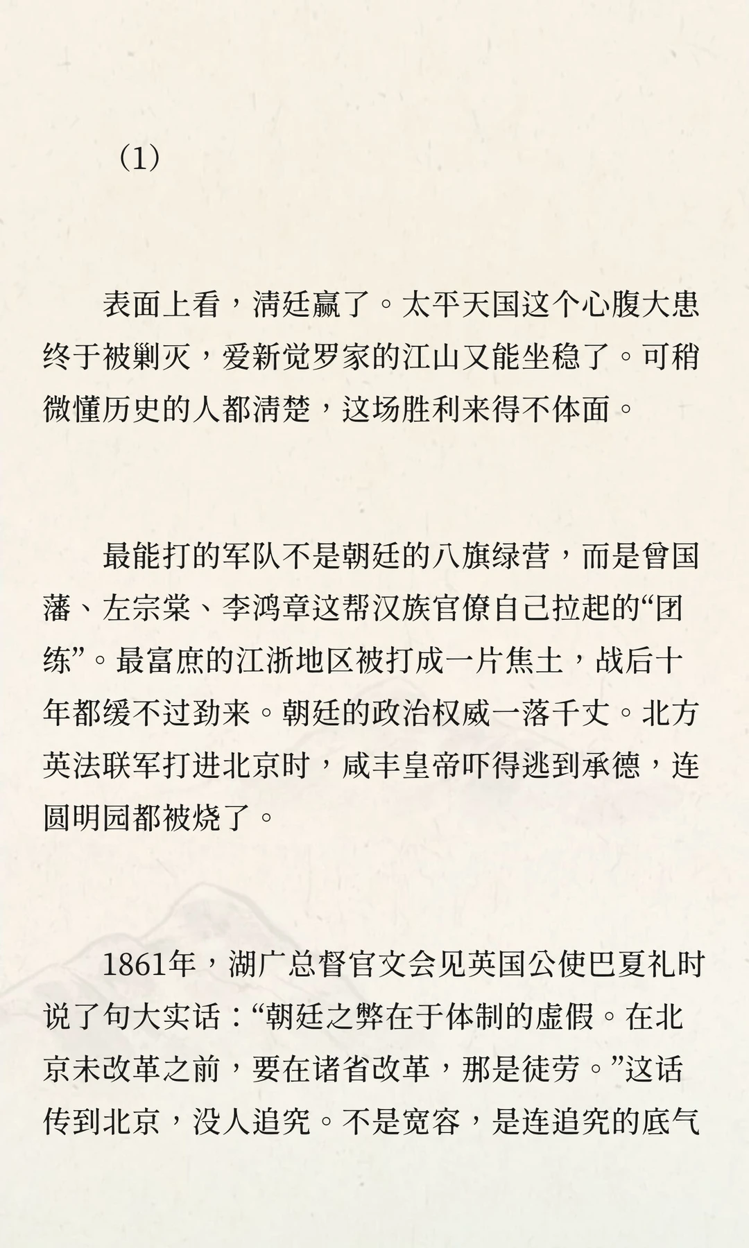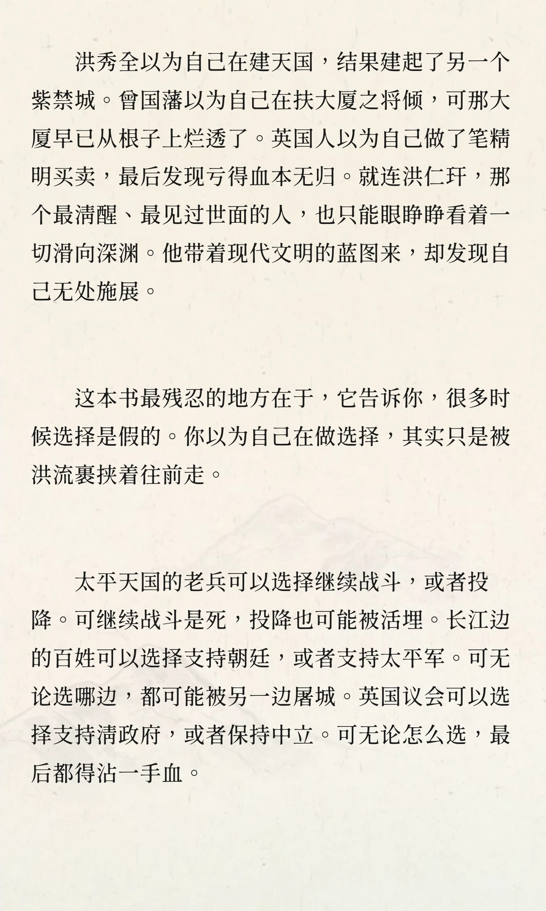 1864年7月,曾国荃的湘军攻破南京,太平天国失败。这场战争导致两千万人死伤,战后可谓是百废待兴。洪仁玕的《资政新篇》未能实施,太平天国最终走向崩溃,土地虽长出麦子,但历史的创伤难以愈合。