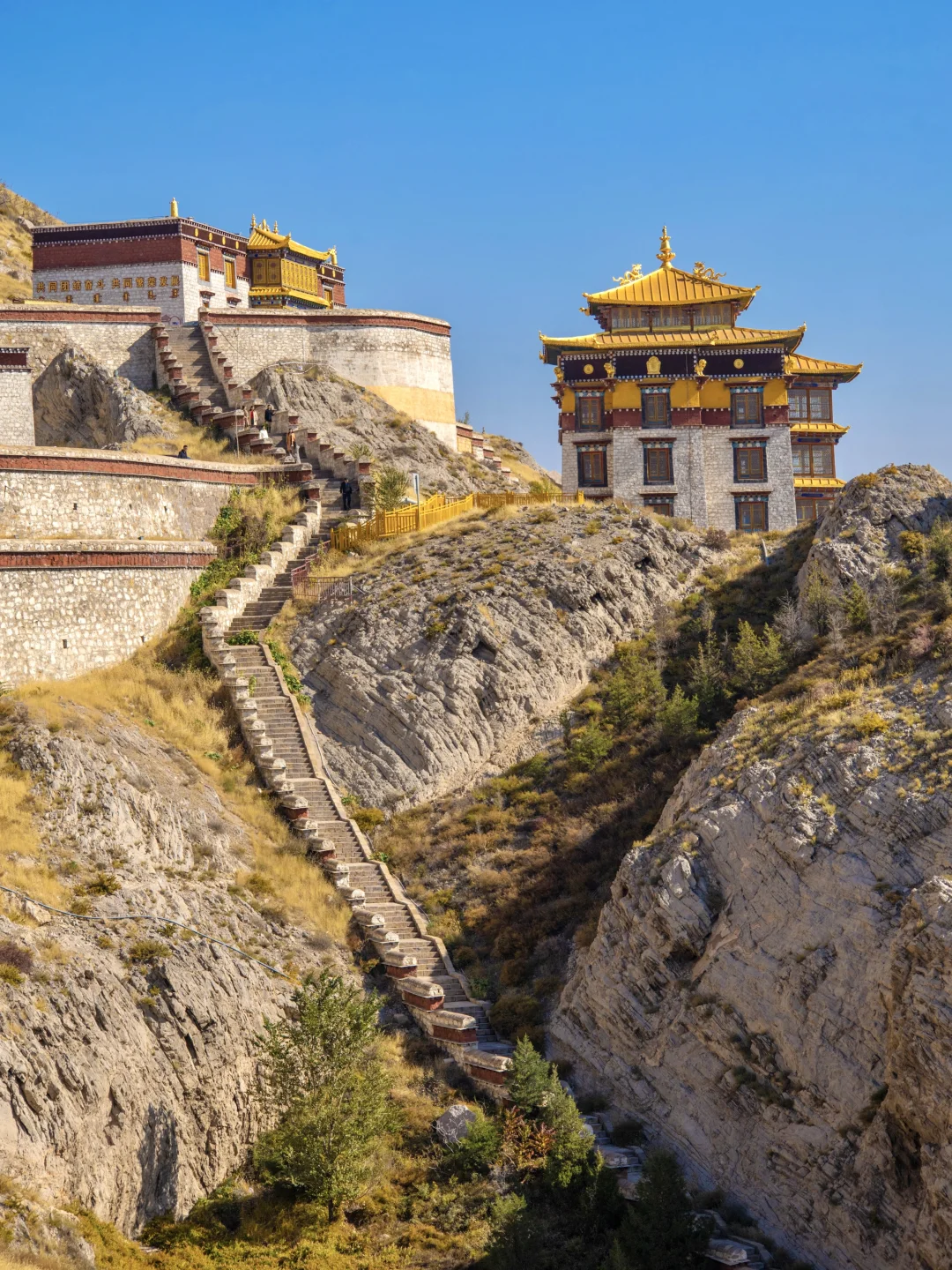 一座藏传佛教寺庙,依山而建的红白建筑,名副其实的“小布达拉宫”。没什么商业,可以自己做个藏式妆造很出片。