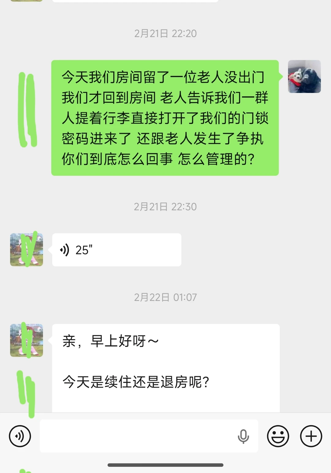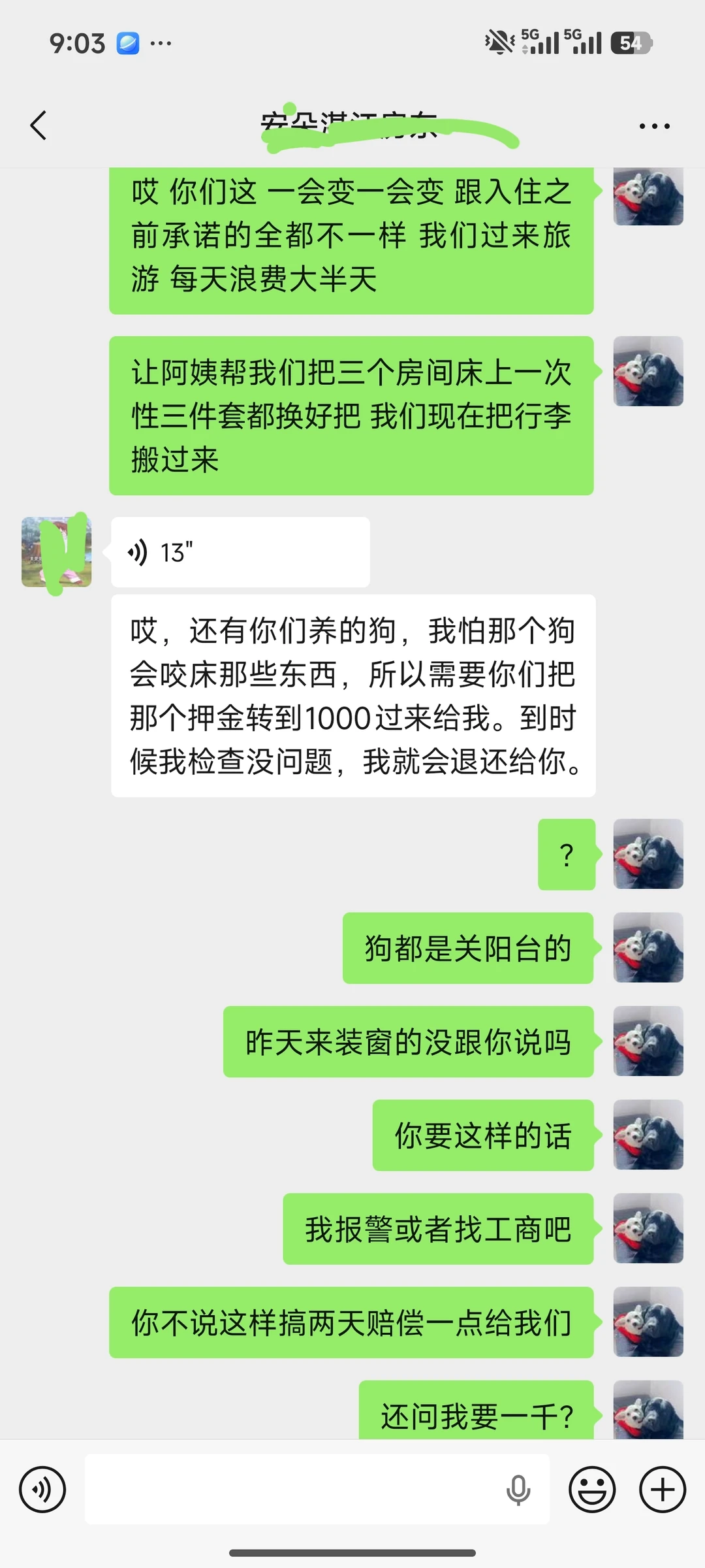 这是第二次发了!好多姐妹已经✉️我同样遭遇!2/15我带着狗狗自驾到湛江,在某团上订了可携带宠物的恒大外滩花园,刚下完单房东就打电话来,说平台抽成太高,薇转账给她,她给我一套更大更好的海景房,于是共计转账7300给她,她安排我入住了一套卫生都没有搞的烂尾楼,甚至床底下都是上一任租客使用过的卫生纸!每天都跟我拖延战术,说原先承诺的那套原租客又续租了,不仅如此,我在入住前就已告知我带有宠物并已交300押金,她当时说可以的,后来又再次向我索要1000押金,并且不准我报警,后来又在我们还在入住期间擅自告诉一行人我们的门锁密码,别人一群人直接闯入我们房间,幸亏当天房内有人