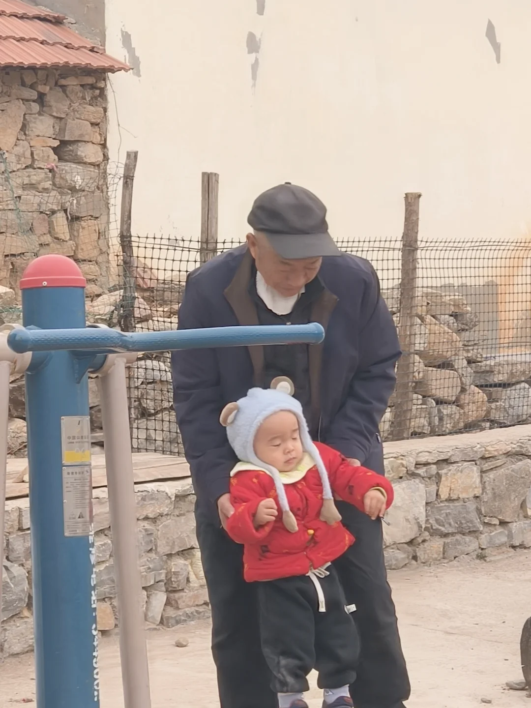 回老家走亲戚 在爸爸脖上 坐的高,看的远
