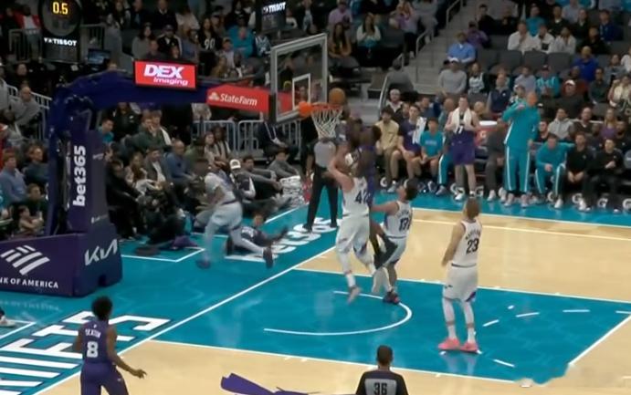 10 11 12 13塞克斯顿抓早期进攻突破冲击篮下,起跳点飞篮下两人内传内找到迪亚巴特,迪亚巴特接球后空篮稳稳放进。