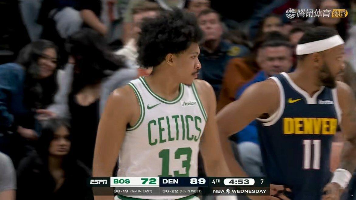 杰伦布朗21中7,普里查德6中1,武切维奇7中1凯尔特人vs掘金