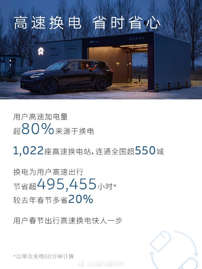 高速换电量占全国高速充换电量的15%,为用户节省超49.5万小时蔚来换电去哪都方便蔚来1亿次换电达成