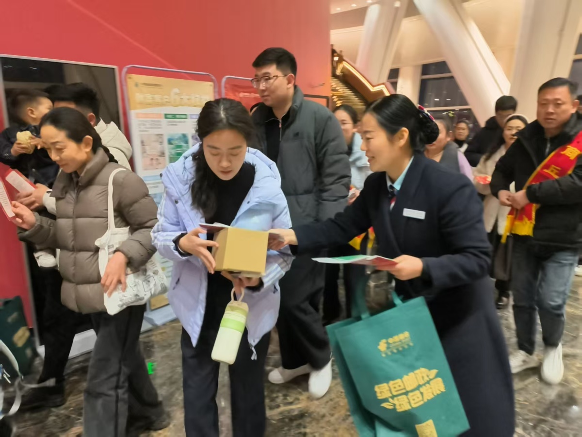 2月12日晚,“2026年商丘市丙午马年春节联欢晚会”在商丘文化艺术中心内举行,在这场文化盛宴现场,商丘市区分公司府前路营业所在演播大厅入口处设立金融宣传专属服务点,将反假币知识普及与新春文化场景深度融合,用一场接地气、有温度的金融惠民服务,为喜庆的春晚舞台增添了一抹亮眼的“邮政绿”。