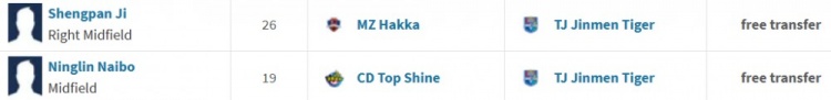 德转显示,季胜攀、彝族球员乃博宁林自由转会至天津津门虎