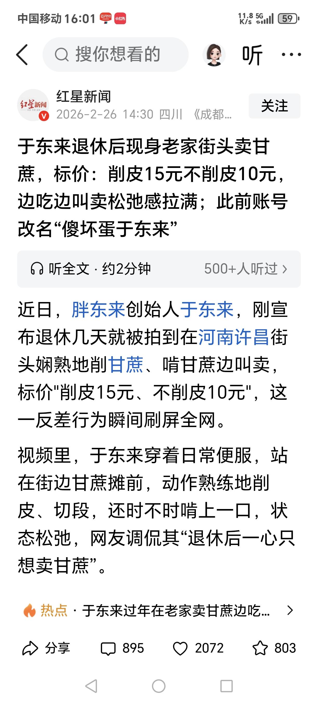 于东来活透了!返璞归真,吃肉也不叭叽嘴!2月11日官宣退休,才过半月就在许昌街头卖起了甘蔗。他穿着普通,熟练地削皮、切段,毫无“大佬架子”。这才是真正的财富自由,这才是随心所欲!也许是初心,也许是儿时梦想! 如果你有过亿身家,你会选择什么样的生活?