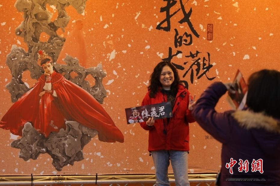 【台湾观众高度评价陈丽君我的大观园】陈丽君感谢台湾观众喜欢我的大观园 2月25日晚,由领衔主演的青春越剧《我的大观园》在台湾桃园展演中心上演,这也是浙江小百花越剧团时隔近15年再度登上宝岛舞台。150分钟的大戏没有中场休息,却几乎无人离席。有观众说,“它和我熟悉的京剧、昆曲韵味不同,更柔美,也更青春。在台湾直接接触越剧的机会不多,今晚看得很过瘾。”来和小鱼妹儿同赏此次演出的舞台↓(刘大炜 摄)