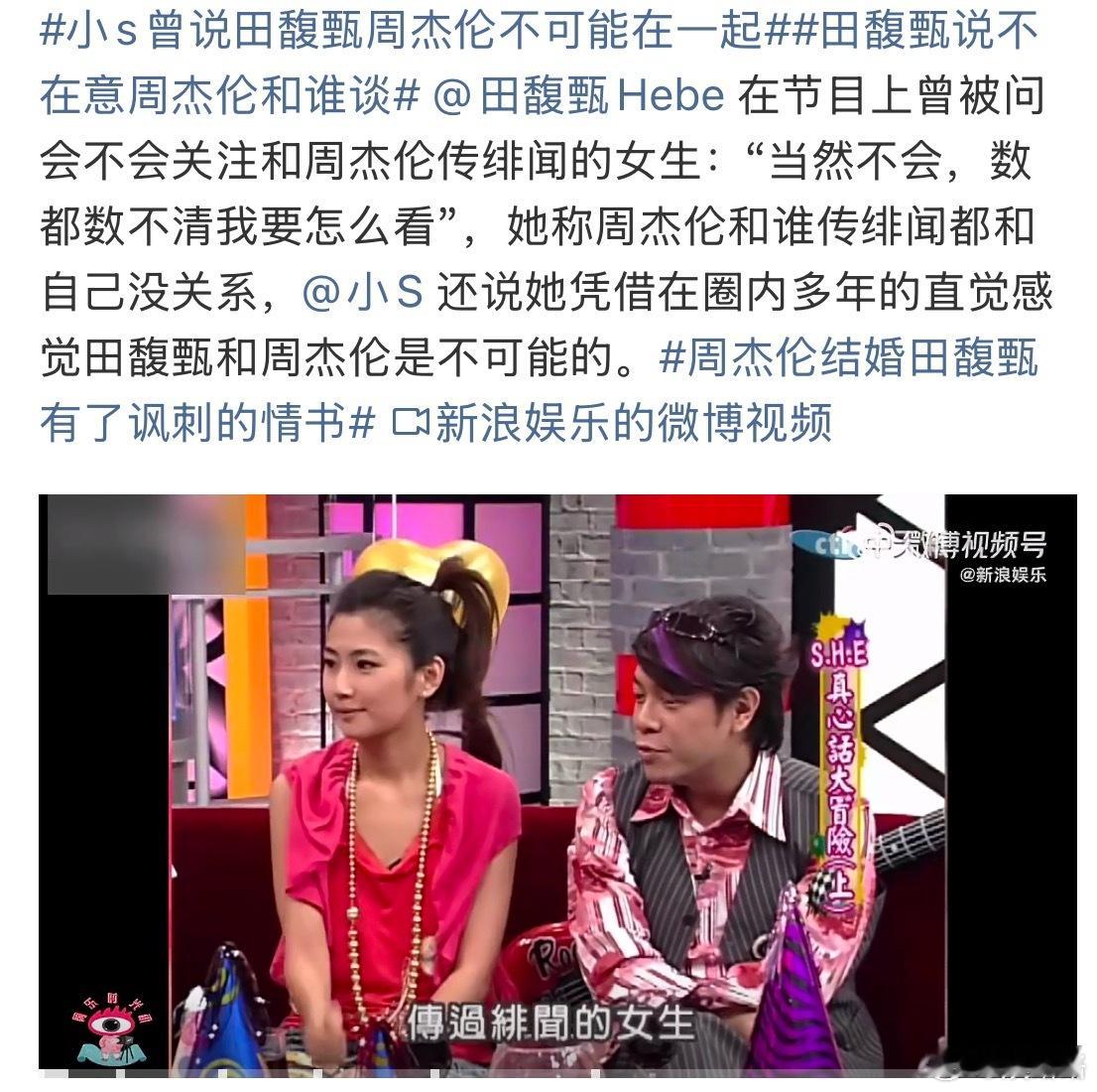 小S曾说田馥甄周杰伦不可能在一起小s曾说田馥甄周杰伦不可能在一起