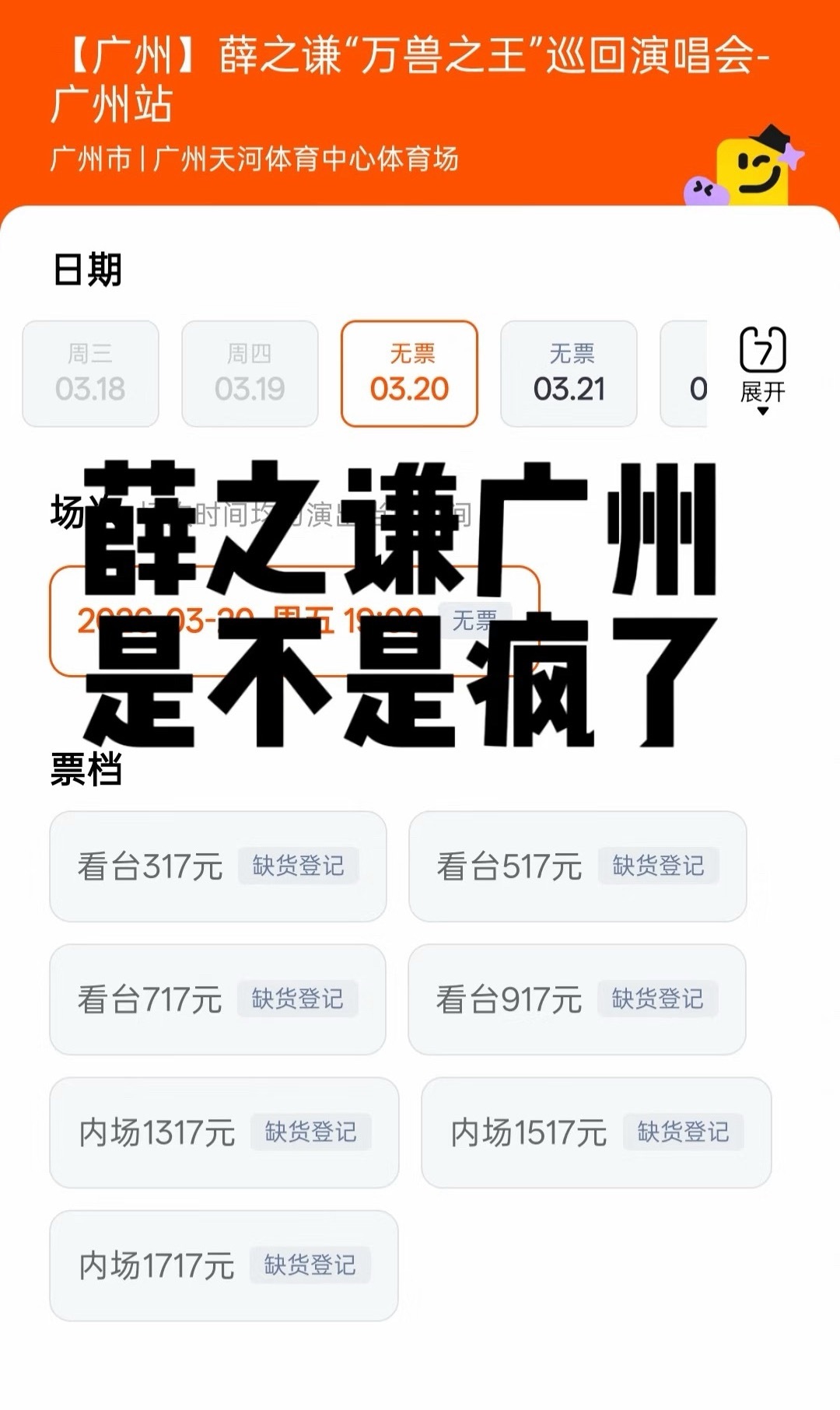 薛之谦开票薛之谦的演唱会太难抢了,广州站猝不及防的前6场预售秒空。时隔一年半,依